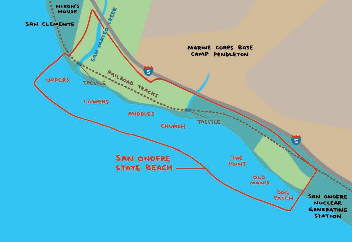 The San Onofre Sur ng Club still exists. Its mission includes making “responsible recommendations to the Department of Parks and Recreation pertaining to the operation and development of the San Onofre Sur ng Beach, and to seek to retain the beach in its natural state.”