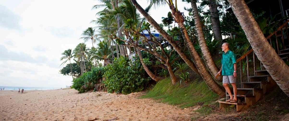 He retired from his engineering job at Pearl Harbor in 1994. Since then, he’s seen some of the kids in the neighborhood grow up to become famous, including the folk/pop singer Jack Johnson, whose parents lived down the beach, and the pro surfer Jamie O’Brien, who grew up in the house next door.