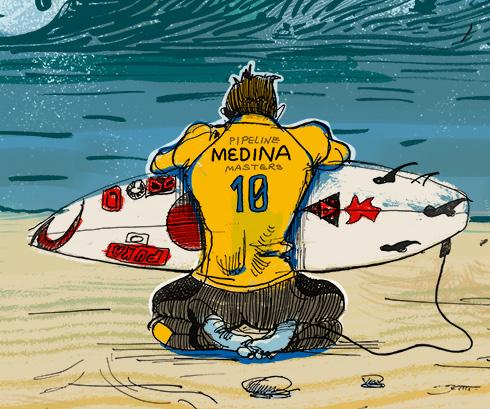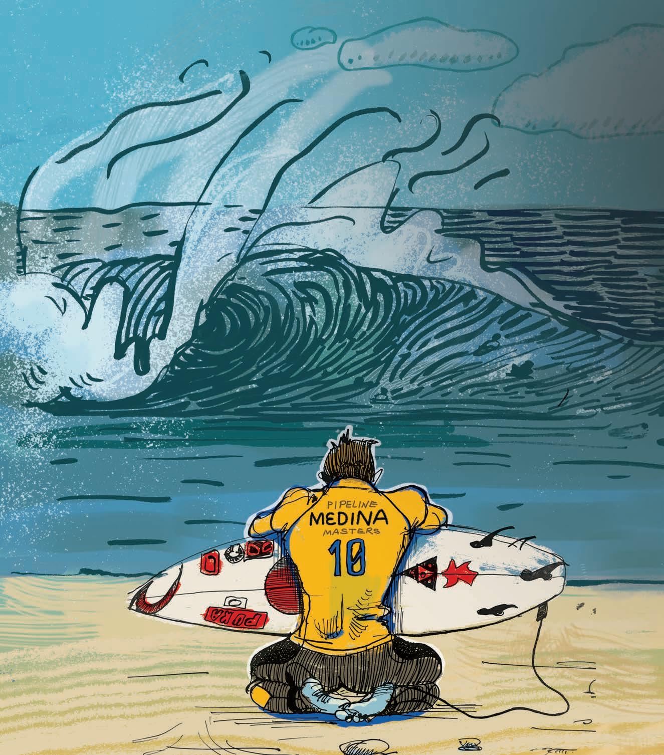 I was 13. When you’re a young boy like I was, you constantly dream of surfing Pipeline. I saw it in magazines, and I also saw my idols surfing that wave. So it was always my desire to surf there. I was thrilled and afraid at the same time. It’s a dangerous wave and any kind of mistake could be fateful. But I went there confident. I went with Miguel (Pupo, another Brazilian surfer). It was his fifth season already and [he] knew exactly how it worked. I remember there was a lot of surfers in the spot. I didn’t know anybody. I just surfed by myself. The first time I competed was in 2011. I was cautious, because it wasn’t the kind of wave I wanted to risk it all. I’ve fallen in many waves, I’ve taken a lot of wipeouts, but nothing serious. Not yet. I’ve been learning over time. This year my goal is to win Pipe. In fact, this is a particular desire of mine. Two years in a row I almost did it. I hope it comes this year, otherwise, I’ll keep working on it.