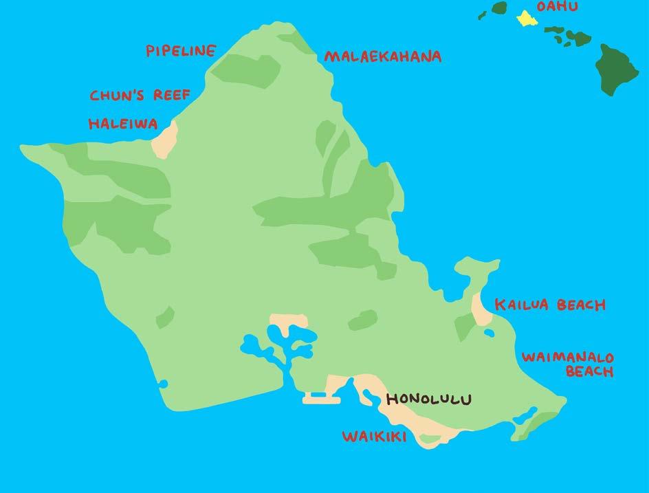 UNDERWATER REEFS AND SEA FLOOR ELEVATIONS ARE LARGELY RESPONSIBLE FOR PIPELINE AND BACKDOOR, THE WAVES THAT BREAK AT THIS PARTICULAR SPOT ON THE NORTH SHORE OF OAHU. WAVES BEGIN TO BEND ROUGHLY ONE MILE FROM SHORE AS A HEADLAND MARKS THE POINT WHEN DEEP WATER SUDDENLY BECOMES SHALLOWER.
