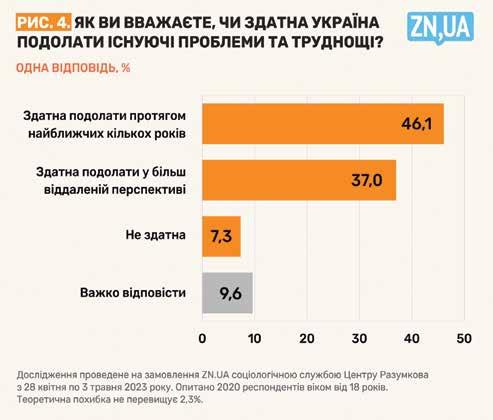 подолати у більш віддаленій перспективі». Лише 7% опитаних не вірять у нашу спроможність вийти з поточної кризи.