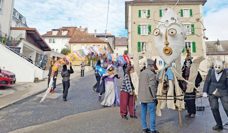 відганяти зло. Адже, за повір’ями, нечиста сила оживлюється на переломі (наприклад, коли зима переходить у весну). Звідки крики, гучна музика, стукотіння, брязкання, різні дійства – щоб відігнати зло. А перебиралися, щоб нечисті духи не впізнали людей і тому не нашкодили. Звісно, на тему карнавалу багато написано і сказано, але так цікаво спостерігати те, що відбувається просто поруч. У Швейцарії велику роль надають «кортежам» (Cortèges) – костюмованим процесіям. Але це не просто хода, а справді кортеж, бо учасники – дорослі та діти – не завжди йдуть пішки, але часто й їдуть на машинах і тракторах, показують акробатичні номери, або дивляться згори з паланкінів або ін-