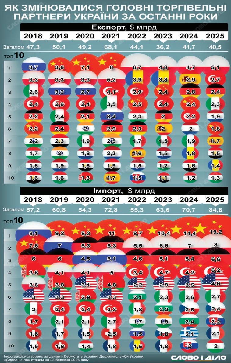 ли Польща (3,3 млрд доларів), росія (3,2 млрд), Туреччина (2,6 млрд) та Іта-
