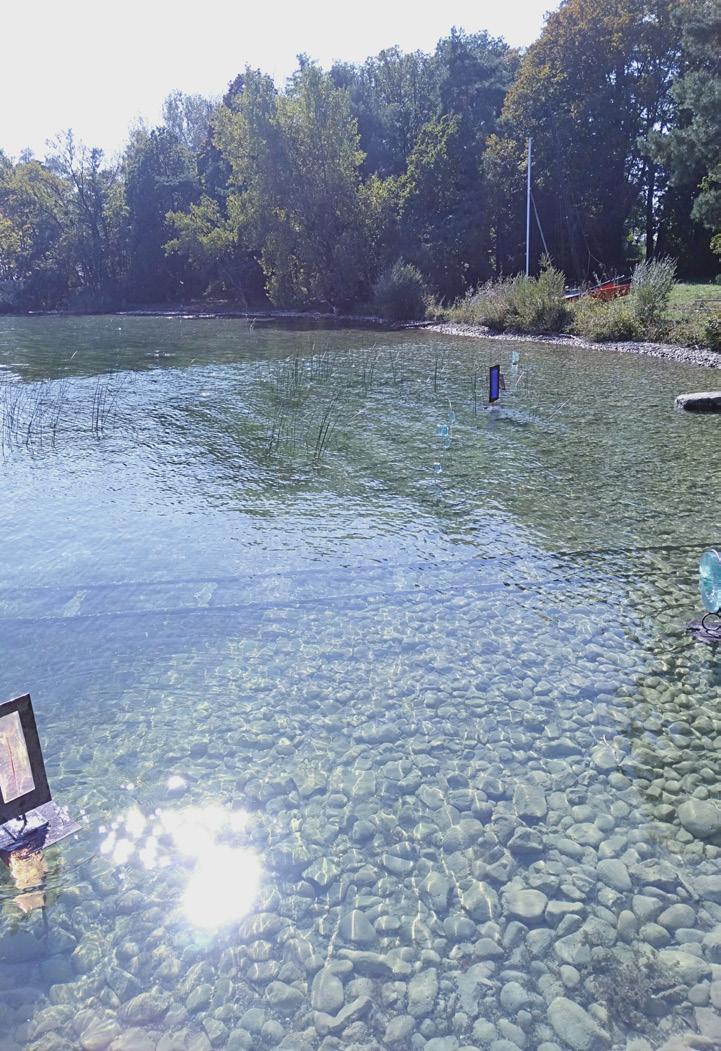 Також на причалі та поряд із ним розставлені акварельні картини, які утворюють діалог зі скульптурами По-