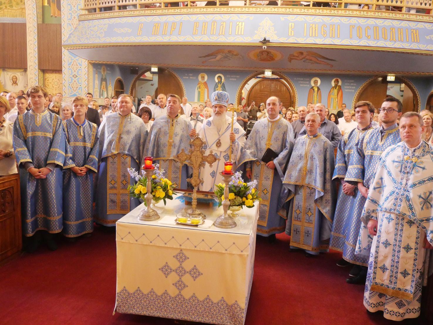продовжили у неділю двома Божественними Святими літургіями та Архиєрейською Божественною літургією, яку очолив Преосвященний владика Венедикт Алексійчук. Високого гостя зустрічали при вході до храму квітами і запашним короваєм. Відправляючи Богослужіння, владика