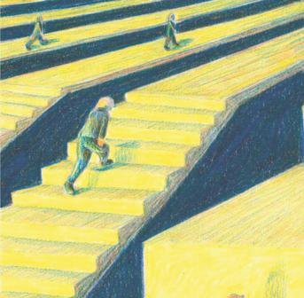 Ich mag keine Treppen. Jahrelang habe ich in Effretikon gelebt, in einer Wohnung im Erdgeschoss. Ohne Treppen. Gleich beim Bahnhof. Ich konnte zum Haus hinaus, auf den Zug und war in Winterthur am Bahnhofplatz, meinem SurpriseStandort. Jetzt wohne ich zwar in Winterthur selber, aber in einem Haus im dritten Stock. Ohne Lift. Was nichts anderes heisst als: Treppensteigen. Ich habe schon richtig Muskelkater! Aber das ist alles halb so schlimm, wären da nicht noch all die anderen Treppen in meinem Leben. Treppen, die mir das System in den Weg stellt.