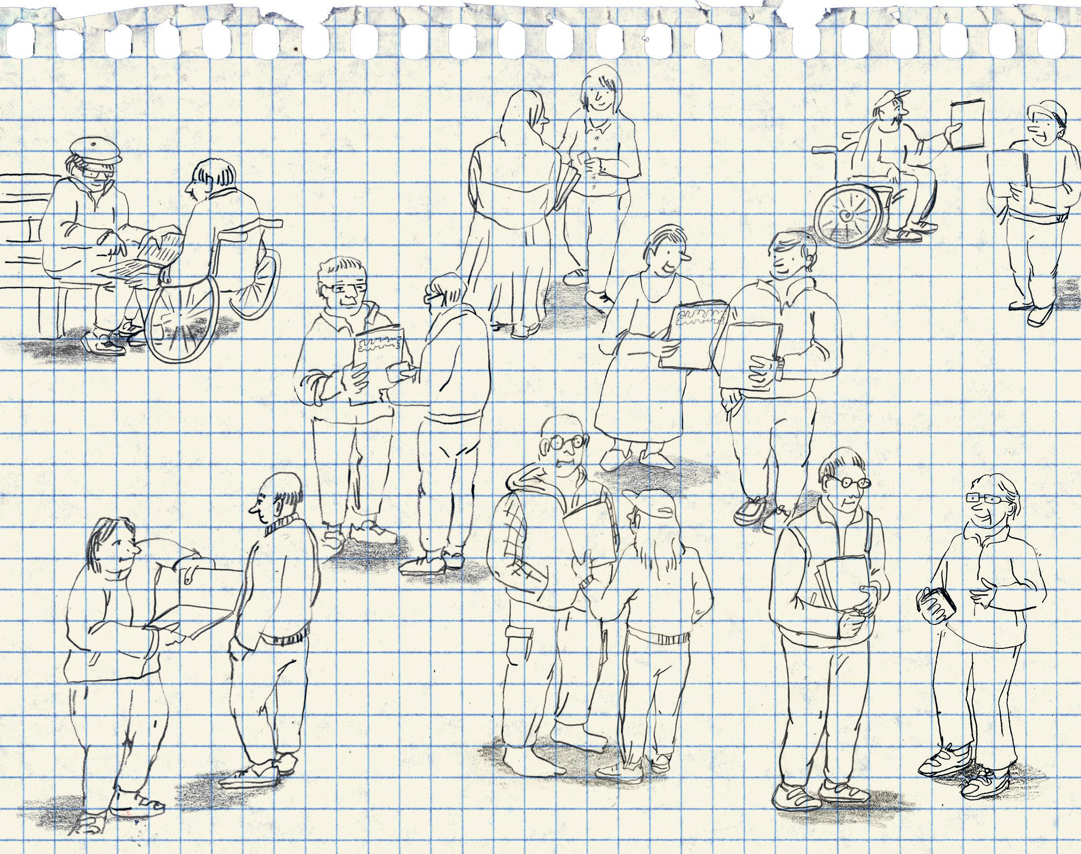 auch unter den Verkaufenden von Surprise kleine, stabile Gemeinschaften bilden. In der Ausgabe, die ich verkaufe, ist auch eine Kolumne von Heini, den ich den Käufer*innen jeweils freudig empfehle.