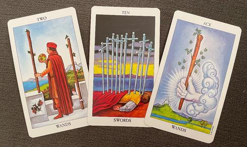 The Two of Wands and the Ten of Swords are an interesting Tarot combination. The Ten of Swords at its core is a card of feeling backstabbed and defeated. It feels as if you are in a crisis because someone has betrayed you and the relationship is coming to an end. However, mixed with the Two of Wands, this card becomes much more hopeful! You will move forward as the Two of Wands predicts, but it will take time. The decisions that you must make may not be easy, but you have the strength within you to find your way. Don’t be afraid to explore the new, as feeling stuck is the opposite of what you want.
