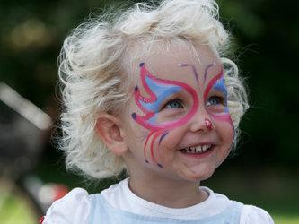 Flavia zaubert mit dem Pinsel kreative, schöne, lustige, und gruselige Motive auf das Gesicht. Anmeldung ist nicht erforderlich.