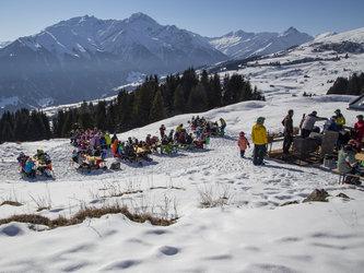 Kosten: pro Person: Fondue 28.00 CHF exkl. Getränke und andere Konsumationen, Schlittenmiete extra