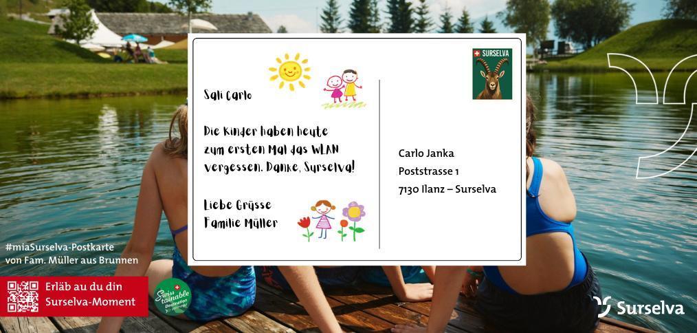Die Kampagne macht die Surselva aus Sicht ihrer Gäste erlebbar. «Die persönlichen Geschichten zeigen auf eindrückliche Weise, was unsere Region ausmacht», sagt Adrian Keller, Leiter Marketing von Surselva Tourismus. «Echte Erlebnisse schaffen Nähe und Glaubwürdigkeit und machen das vielfältige Sommerangebot der Surselva auf natürliche Art sichtbar.» Begleitet wird die Aktion durch kurze Videoclips mit Carlo Janka, die über die Social-Media-Kanäle von Surselva Tourismus ausgespielt werden. Der ehemalige Skirennfahrer ist seit mehreren Jahren Markenbotschafter der Destination und ruft in den Videos zur Teilnahme an der Kampagne auf.