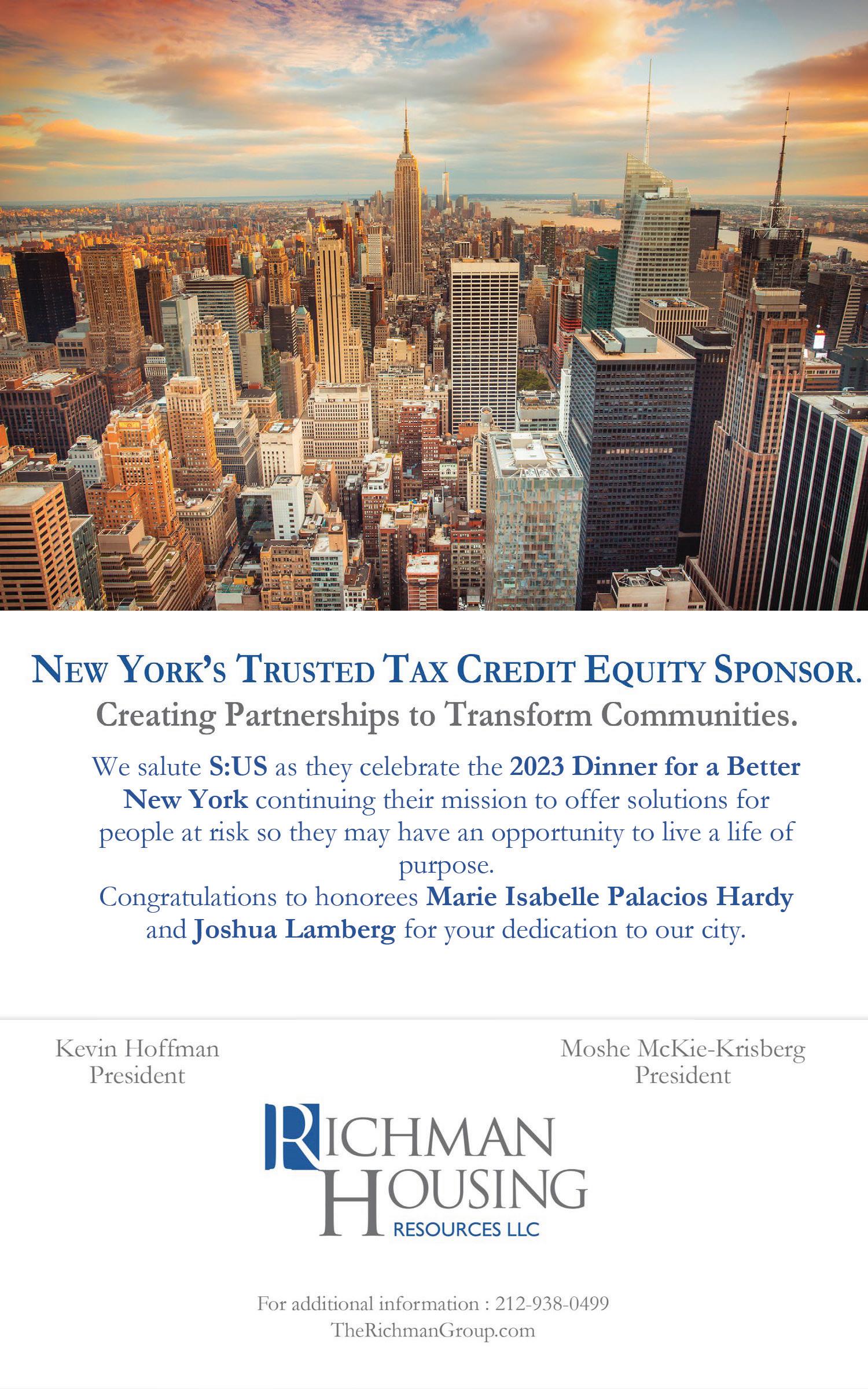 JOIN sus.org info@sus.org 212-633-6900 To make a donation: Visit sus.org/donate Call 917-408-1632 Mail check payable to: Services for the UnderServed Attn: Resource Development 463 Seventh Ave, 17th Floor New York, NY 10018 (Memo line: Dinner for a Better New York 2023) Thank you! @servicesfortheunderserved @sus_org @sus_org @Services-for-the-UnderServed