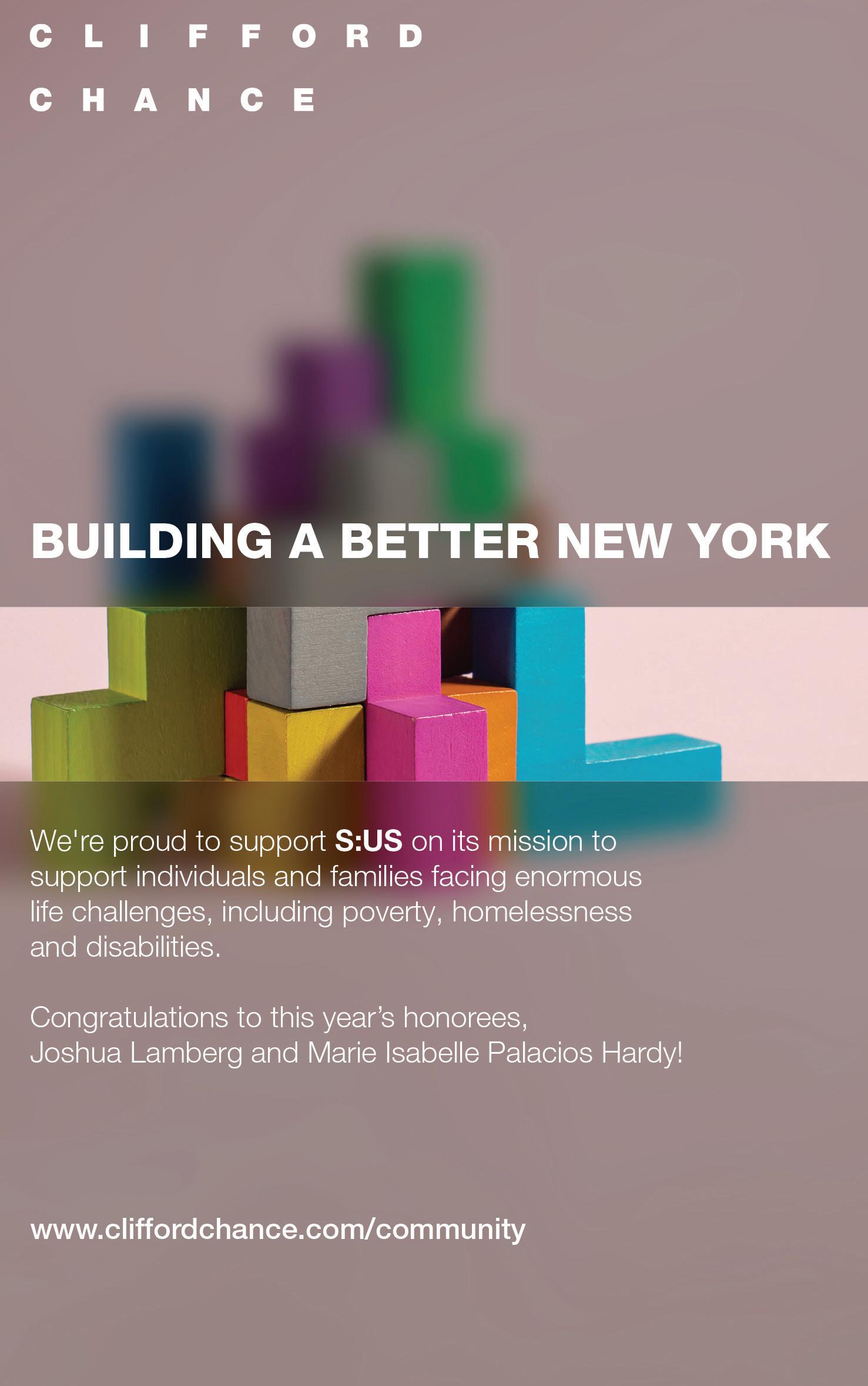 As New Yorkers, we believe that nothing is beyond our scope if we work together. Please accept our deep gratitude to all who so generously support S:US’ vital work.