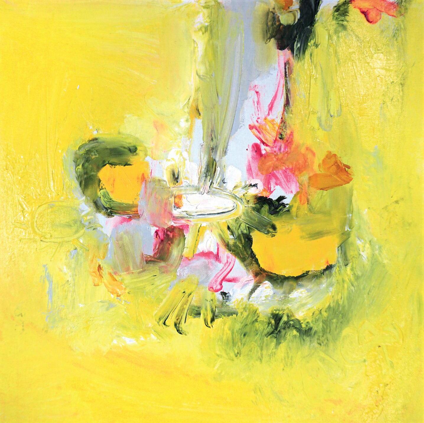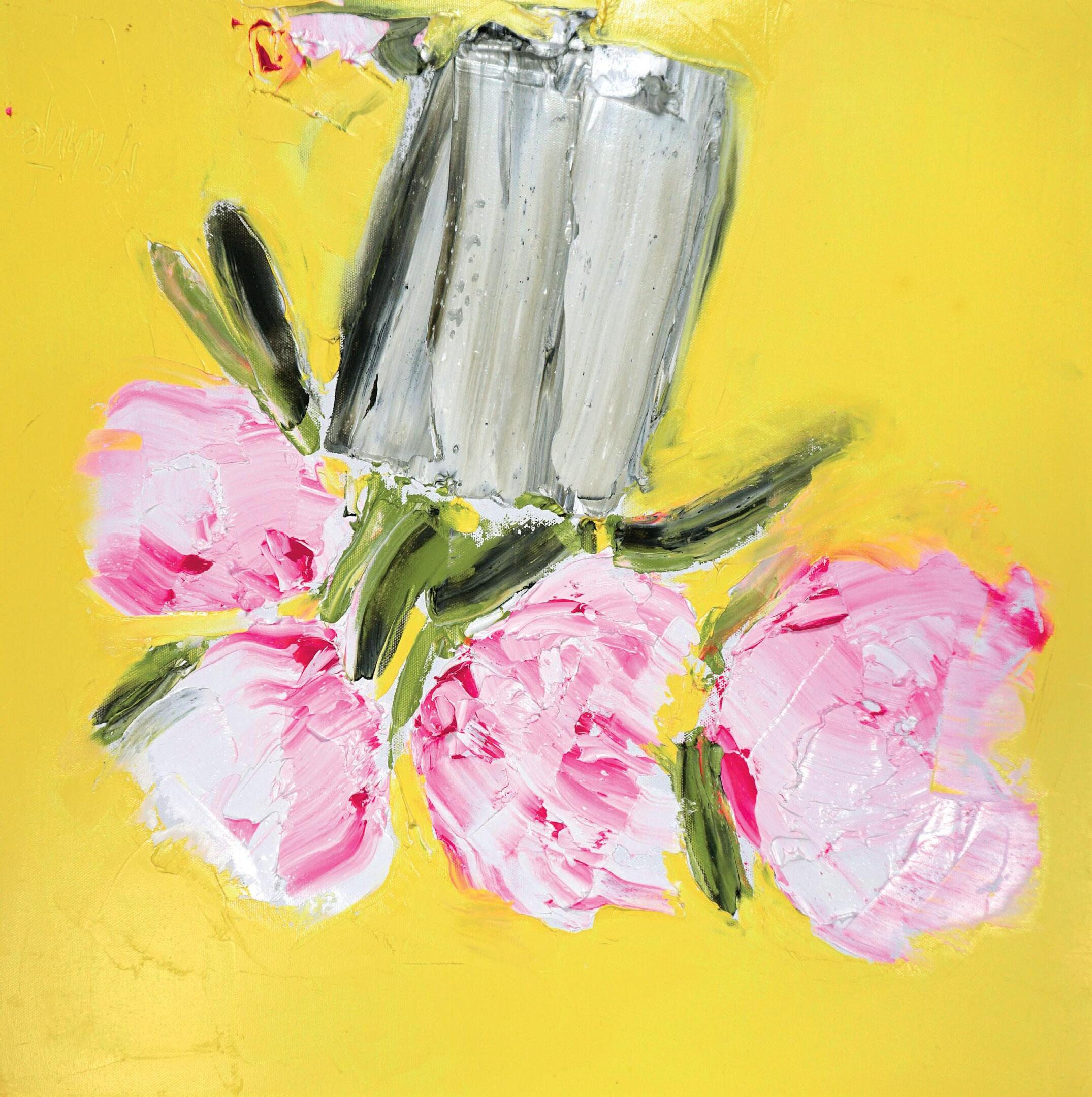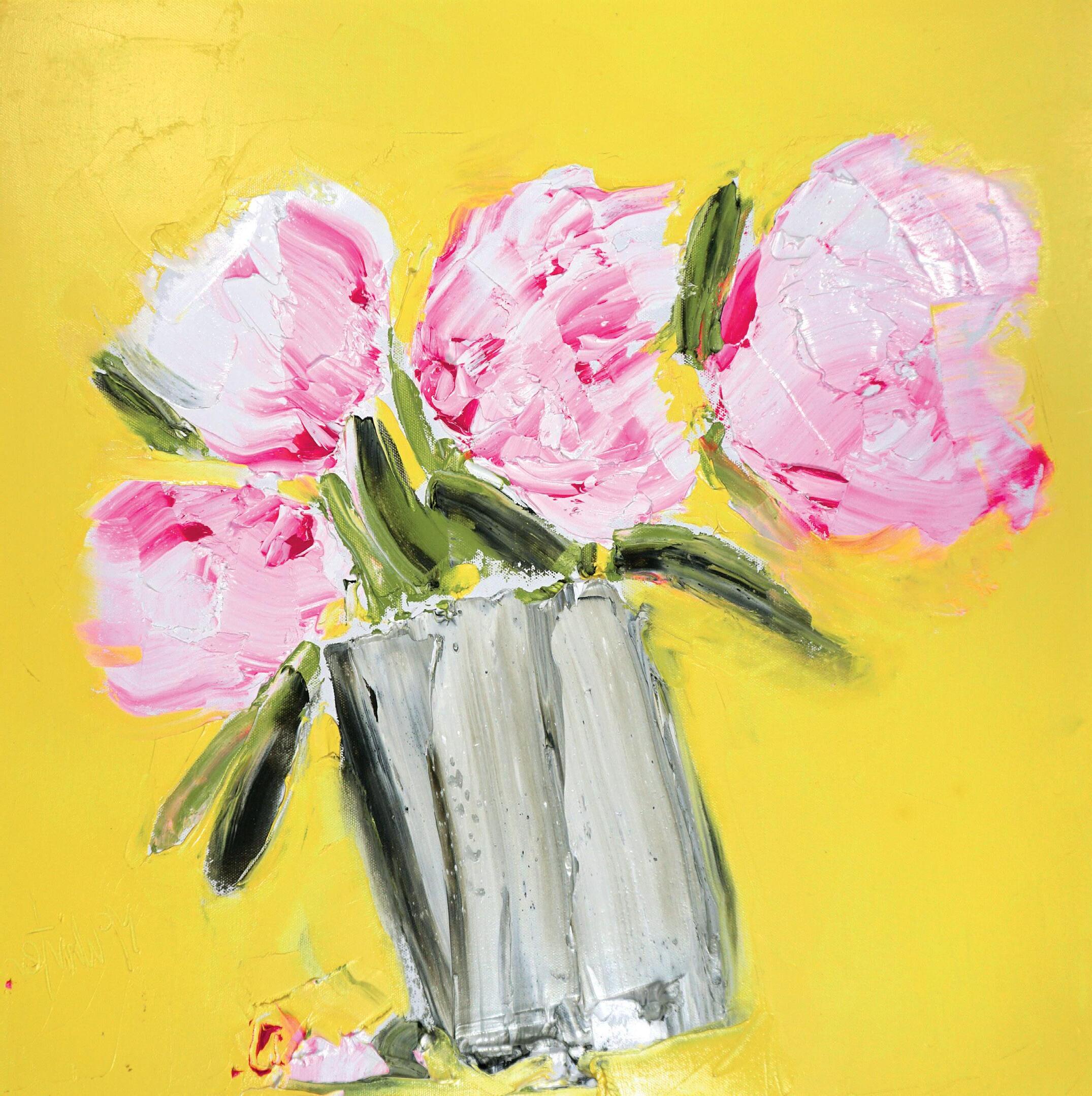 ‘Peonies against Indian Yellow,’ Oil, Canvas Size 40 x 40cm