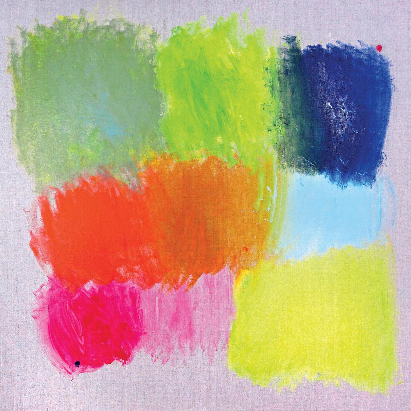Frankenthaler’s soak-stain technique, which she pioneered in the 1950s, intrigued Alison to such an extent that she emulated it in a group of exquisite abstracts inspired by the palettes of famous nineteenth and twentieth-century artists. Her interest in the subject was spiked in 2015 by the discovery of one of Francis Bacon’s heavily encrusted palettes on display in the Hugh Lane Gallery in Dublin. Her enthusiasm was reinforced in 2016 when she came across the collection of Whistler’s palettes on view in the Hunterian Art Gallery in Glasgow. This prolonged fascination culminated this year in the creation of five paintings based on the palettes of Degas, Renoir, Gauguin, Kandinsky, and Frida Kahlo, which together form a cohesive and harmonious quintet.