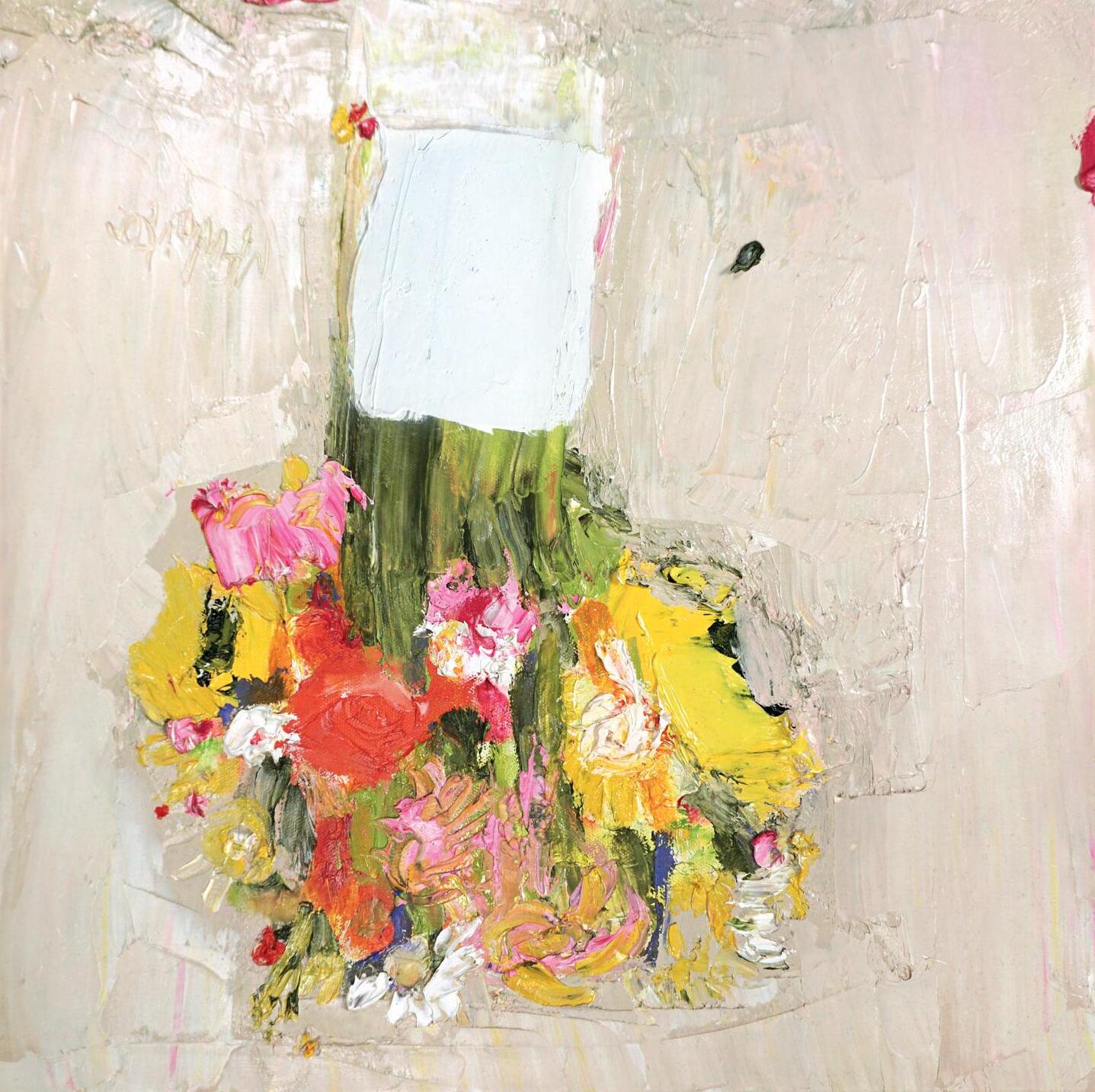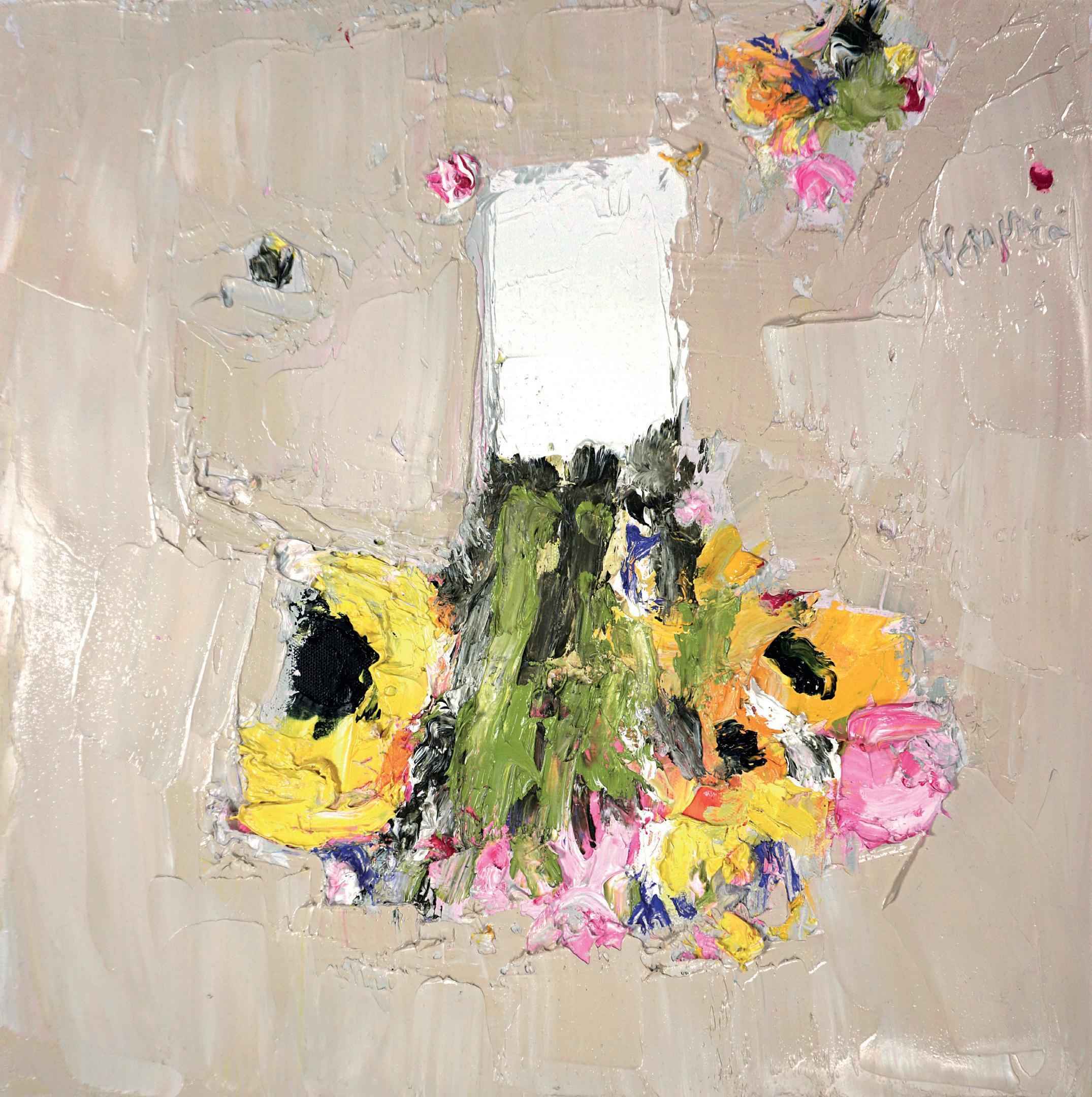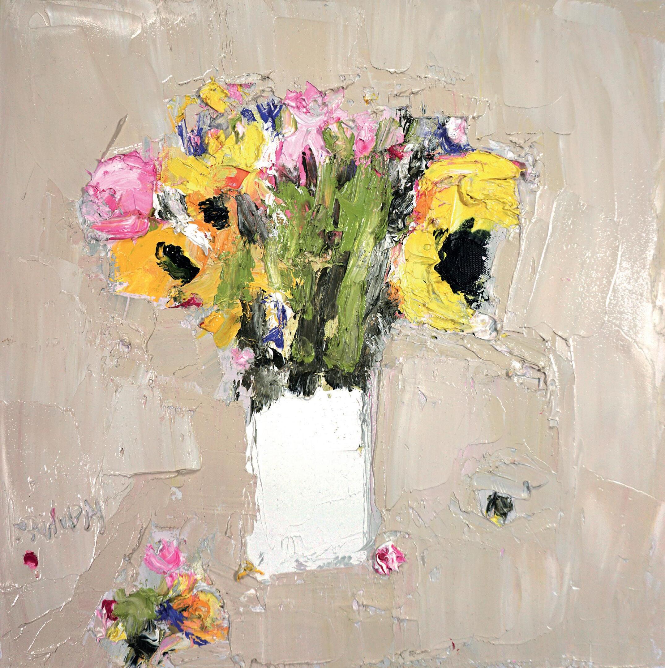 ‘After the Deluge Sunflowers and Roses,’ Oil, Canvas Size 40 x 40cm