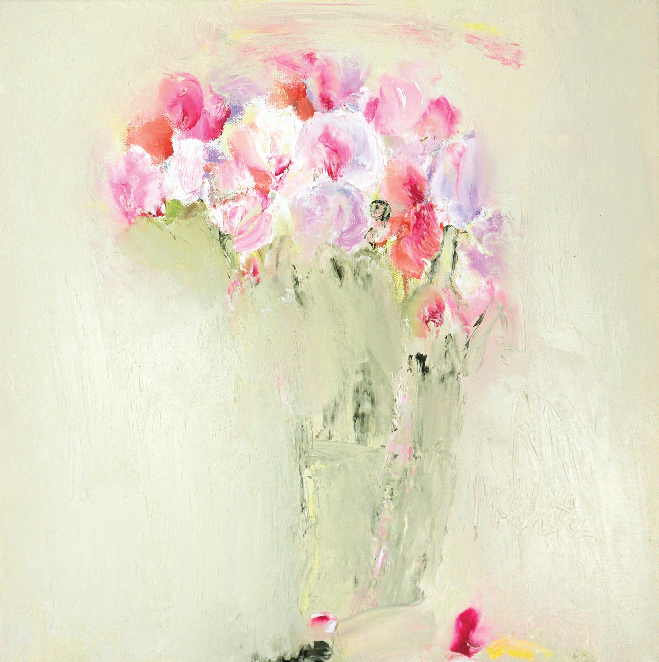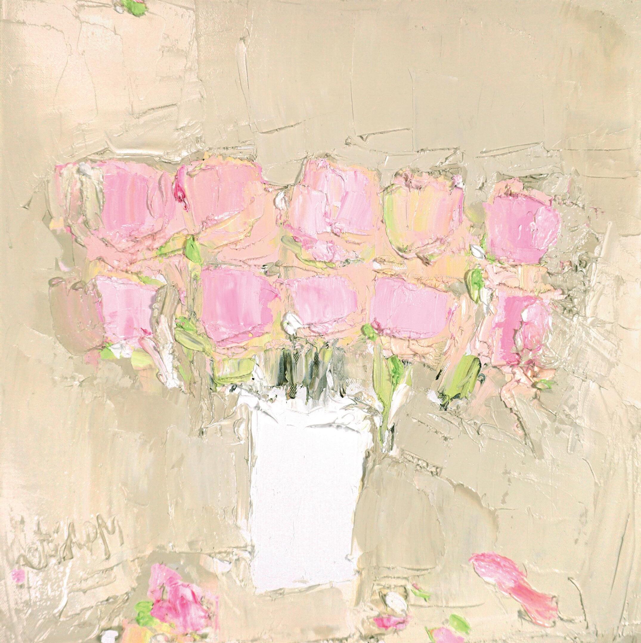 ‘Peonies against Pale Umber’ Oil, Canvas Size 40 x 40cm
