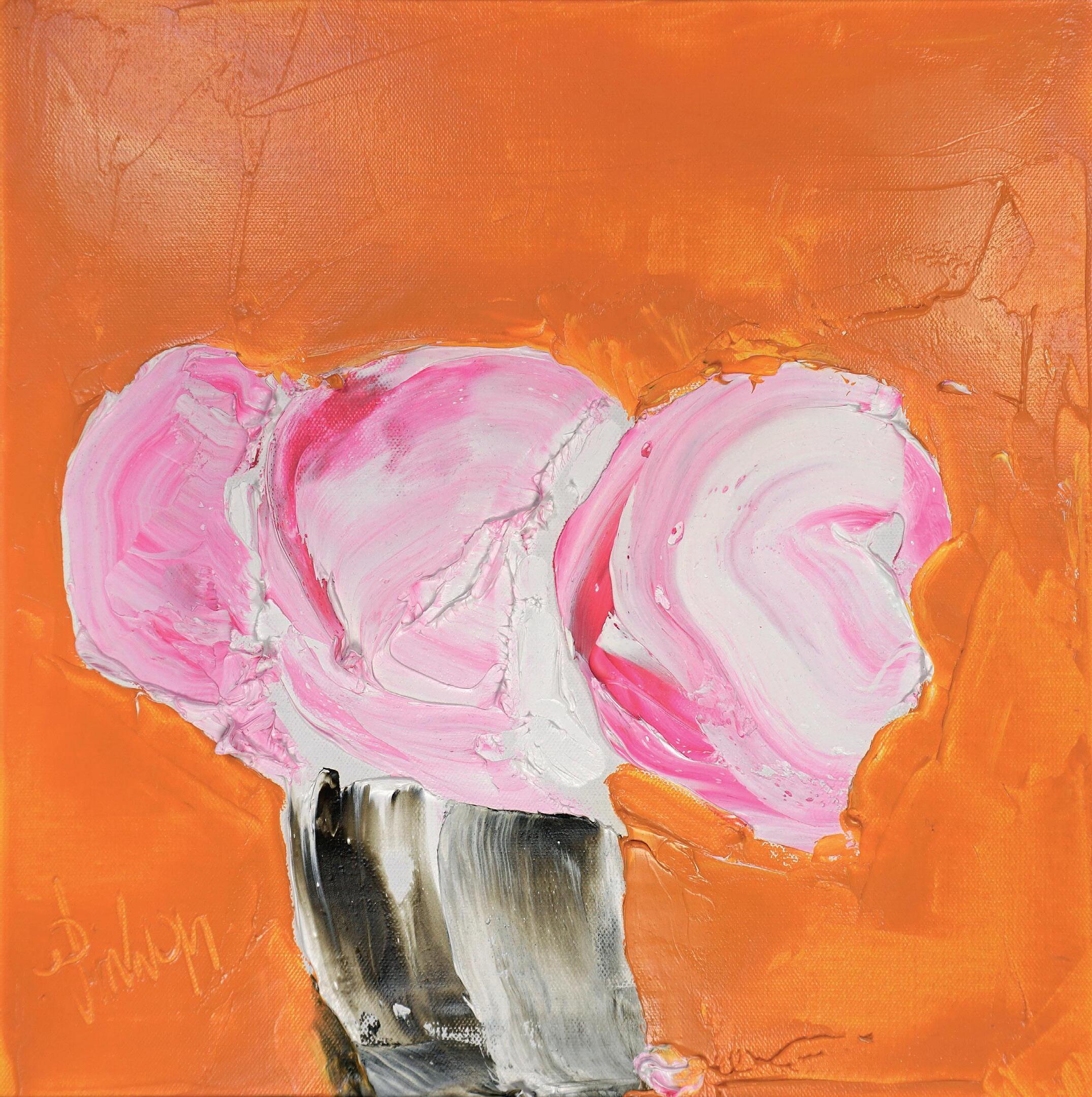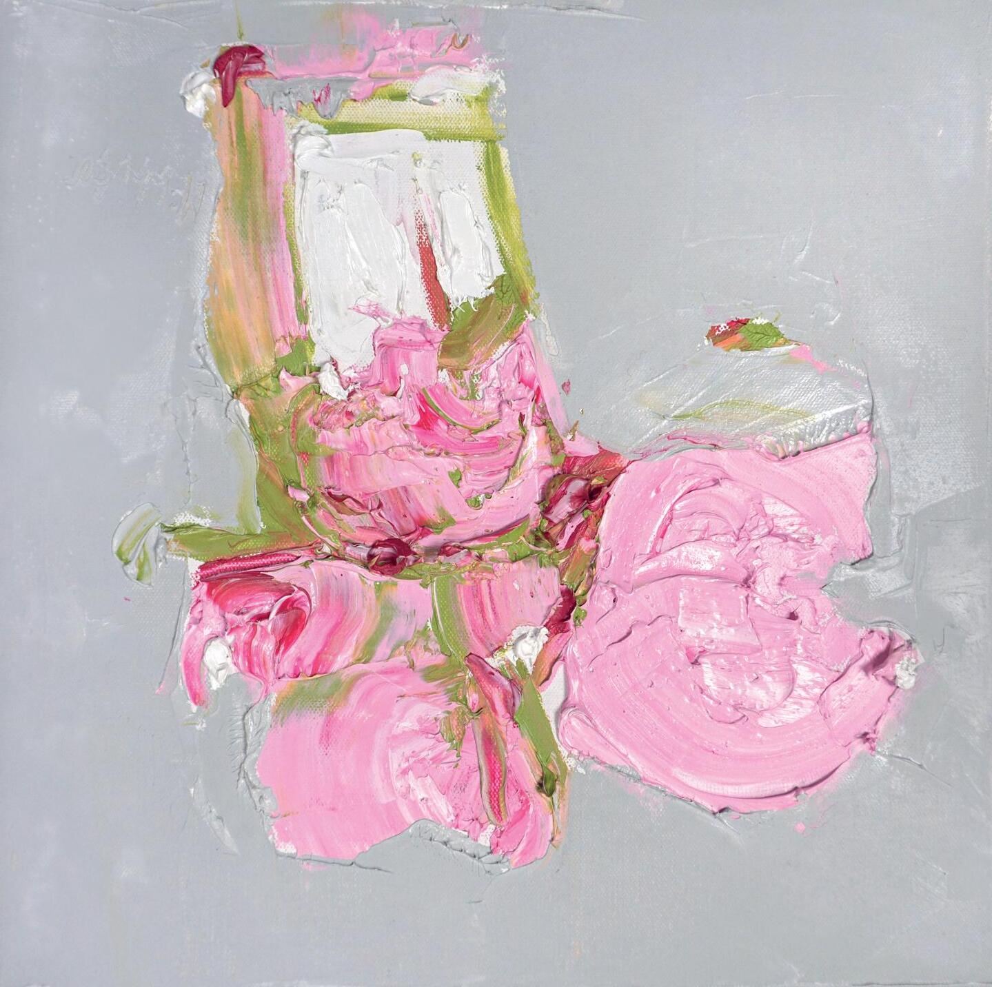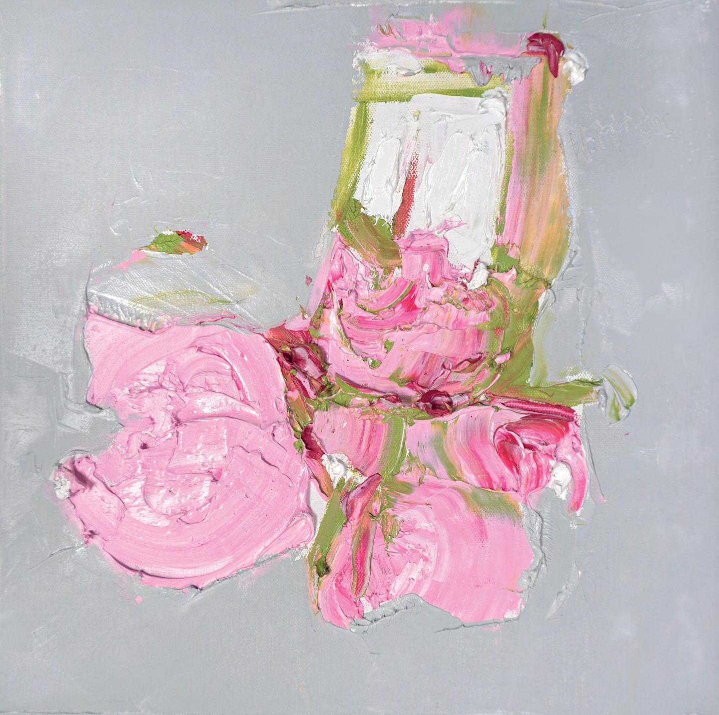 ‘Poppies and Superstar Roses against Jamur Pink,’ Oil, Canvas SIze 40 x 40cm
