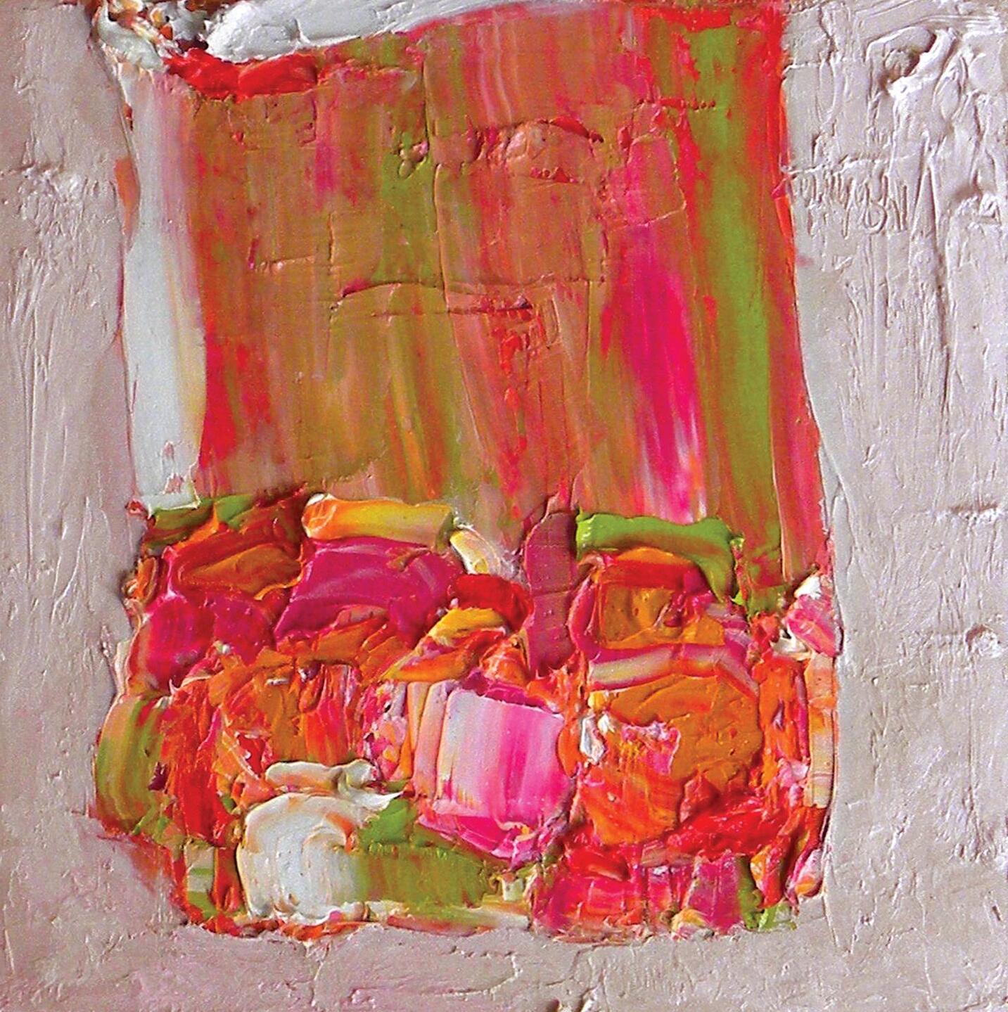 Alison’s paintings are underpinned by her unquestionable sincerity and characterised by such freshness and enthusiasm that they appear to have been painted spontaneously. In fact, although there are occasional acts of last-minute spontaneity, they are fundamentally the product of long periods of reflection and introspection. Alison is remarkable for her willingness to acknowledge the struggles entailed in making a painting; in her own words “to embrace the mysterious nature of the creative process.” Her style continues to evolve as a result of her constant, restless, unquenchable urge for experimentation, and an inexorable quest for ever greater abstraction. To this end, she has recently resorted increasingly frequently to the use of her own fingers and the palette knife, wielded at times with breath-taking bravura. The dominant colours are often transferred directly from the tube to the canvas, then smeared or swirled at will across the surface, culminating in a sensuous, thick, buttery impasto.