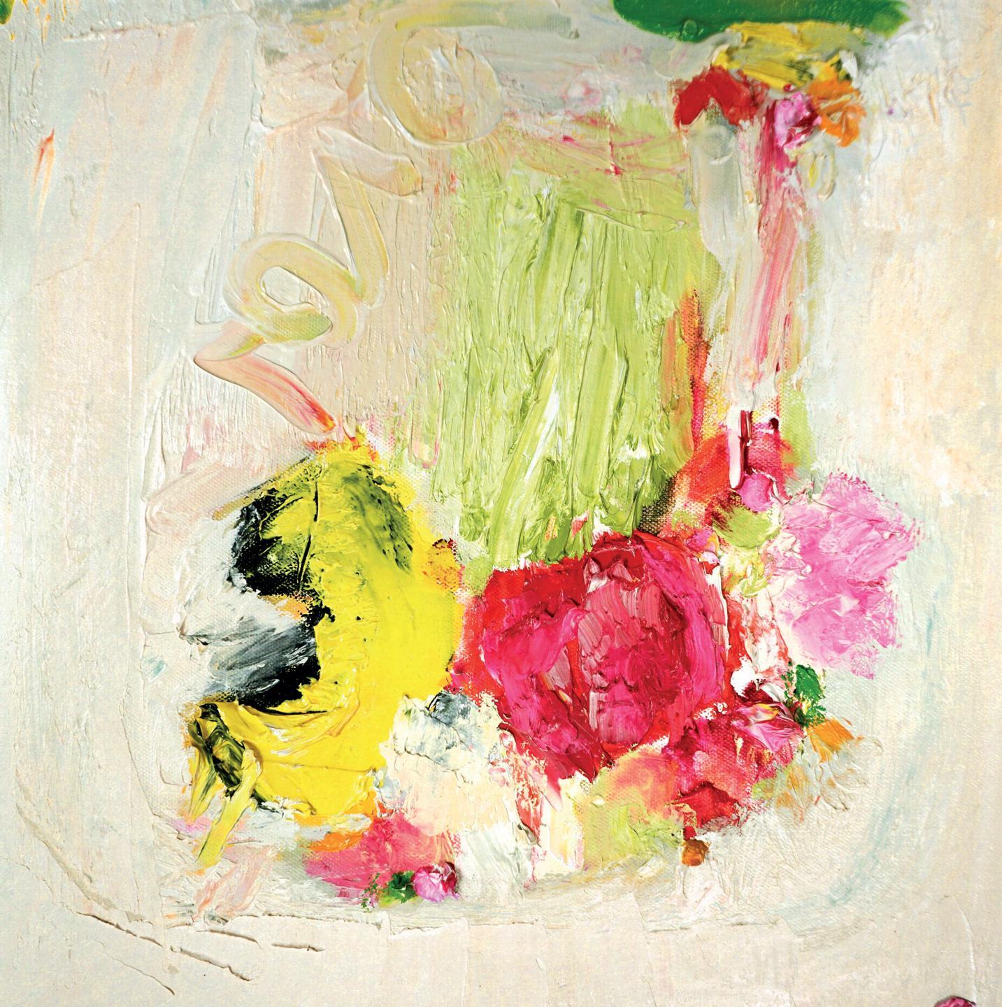 Executed in her Glasgow studio, they comprise discrete groups: abstracts and still lifes of flowers, of which the latter constitute by far the greater part. Unique among the abstracts is ‘Covent Garden’, which represents a composite of Alison’s “flashbacks,” memories ranging from visits to London’s most famous flower market to strolls along Las Ramblas in Barcelona. Both formally and technically it is indebted to a much admired painting of 1984 by Helen Frankenthaler entitled ‘Covent Garden Study’ in the reserve collection of Kettle’s Yard in Cambridge.