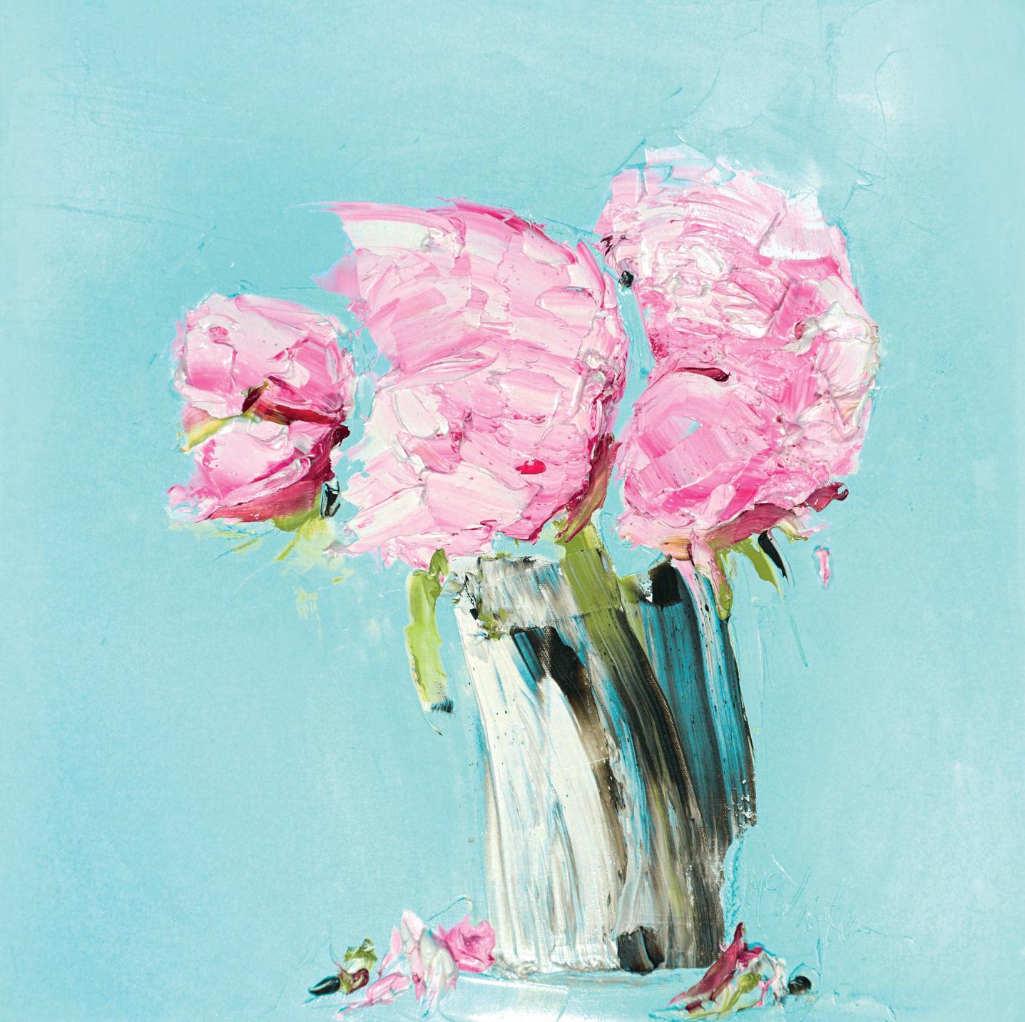 ‘Peonies against Duck Egg Blue,’ Oil, Canvas Size 60 x 60cm