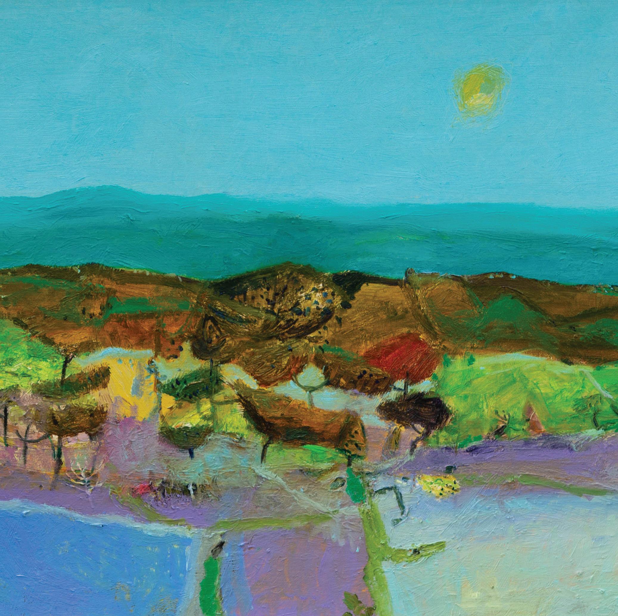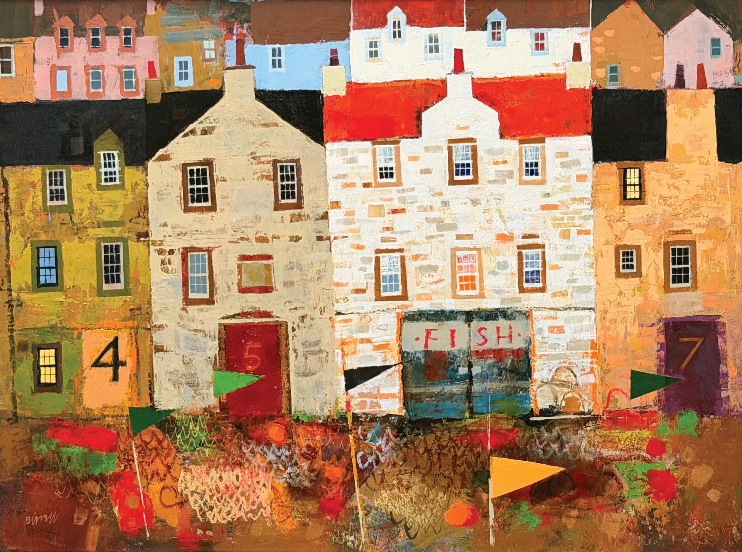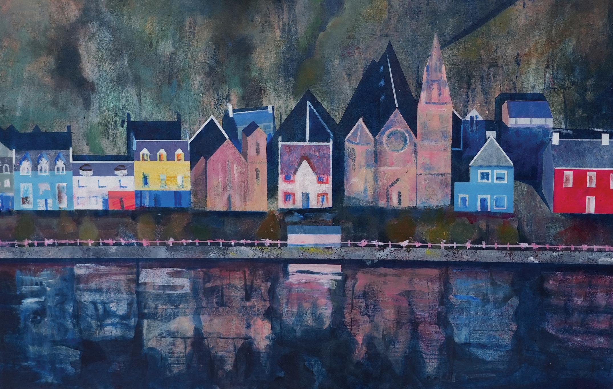 His paintings are characterised by rich colour, strong structure and stylised form, combining an architectural sense of line with an emotional response to place. Offering a deeply personal and evocative vision of Scotlandâs built and natural environment, each piece is shaped by memory, observation and imagination rather than literal depiction.