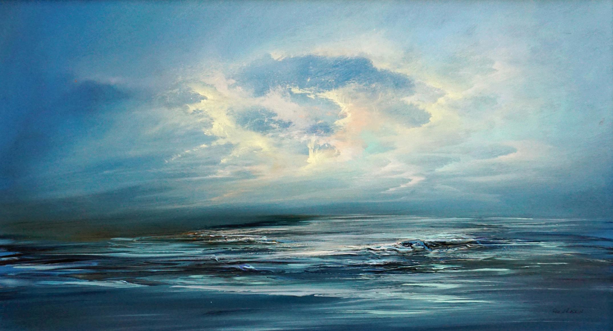 Over time, he developed a distinctive visual language rooted in his enduring connection to the sea. His current practice focuses on capturing texture, light and atmosphere, working predominantly in oil on cotton panels, across a range of scales from intimate small works to larger-format paintings.