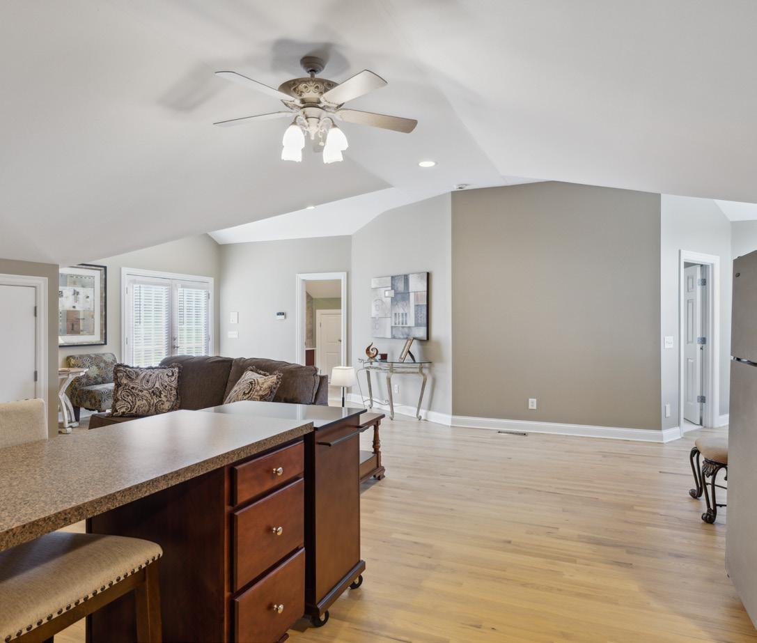 The sizable Bedroom features a vaulted ceiling with plush carpet, a ceiling fan, walk-in closet with wood shelving and a double window with blinds. The Bath opens to the Bedroom and Family Room areas and is adorned with cherry cabinetry, a tub/shower combo with marble tile surround and a linen closet, everything your guests or loved ones need for a comfortable stay. They will never want to leave! Your teenage or college student will love the privacy. Need extra income? This is the perfect space for a renter. Such a flexible space and endless possibilities.