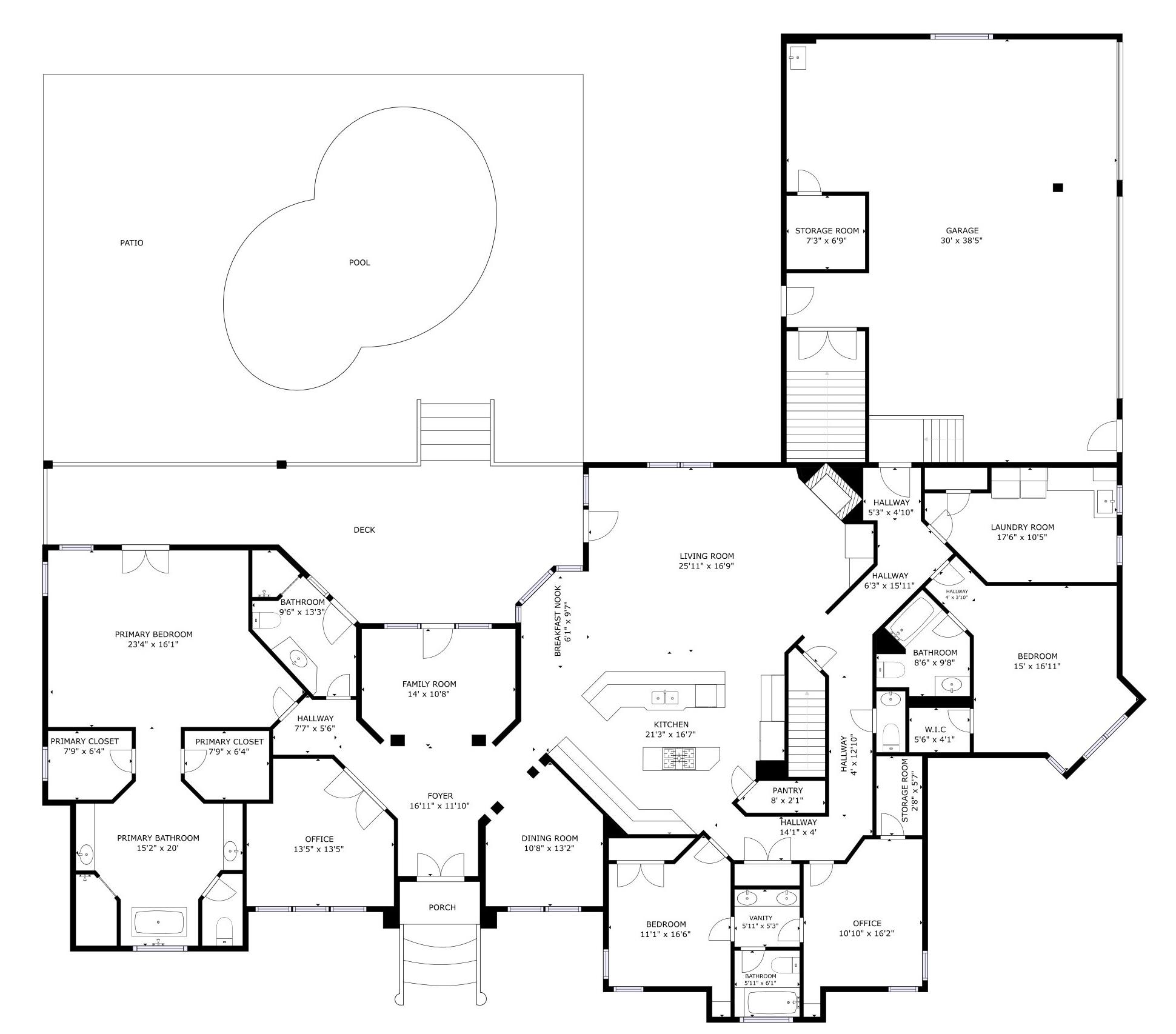 Love your car or enjoy tinkering around in the garage? The Oversized 3-Car Garage comes with epoxy floors, painted walls, insulated garage doors, wood stairs, a workshop/tool area and storage closet, double door entry that leads to the basement, as well as a pedestrian door to the Lanai and Pool area and a second pedestrian door leading to the driveway area.