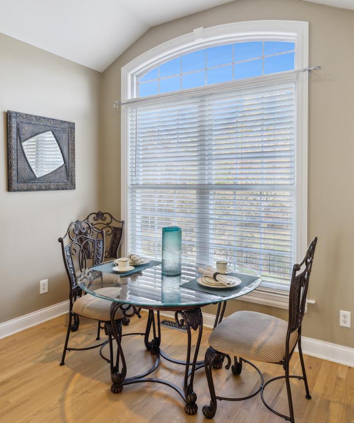 Cozy yet sophisticated, the Formal Dining Room capitalizes on lifestyle trends for yesterday and today. Only steps away from the Breakfast area, this space offers additional seating while entertaining your guests. Architectural elements include heavily trimmed column entry, wainscoting and chair rail, coffered ceiling with crystal chandelier, and topped off by another wall of windows with plantation shutters for lots of natural light. Enjoy good food and fellowship with family and friends.