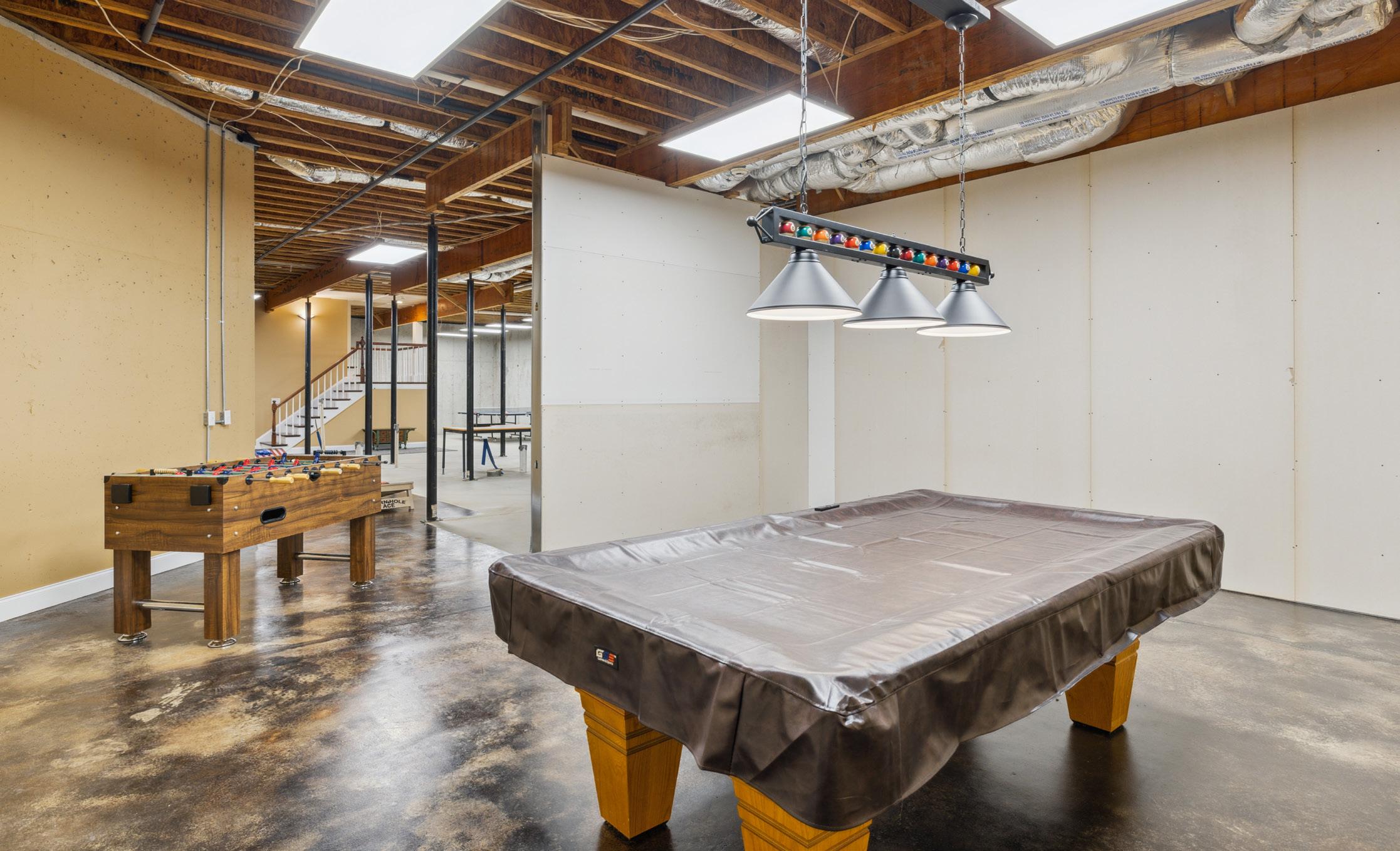 The Basement also features a TV area with transom window and ceiling fan, double door storage area where the Generac transfer switch, central vac system, tankless water heater, and a workbench are located. Also featured are large open areas and tall ceilings with enough room for a basketball goal, ping-pong table, corn hole, poker table, foosball or a roller skating rink for the kids. Additionally, a pool table area with table light, TV mount, and another storage area with a water softener tank finish the space. Poured concrete walls, and compatible plumbing for a future kitchen and a bathroom, make this a very versatile space. The possibilities are endless, what do you envision?