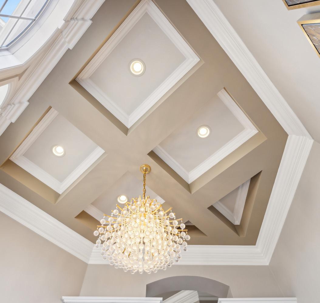 • Unique coffered ceilings, wainscoting, crown molding & custom trim throughout