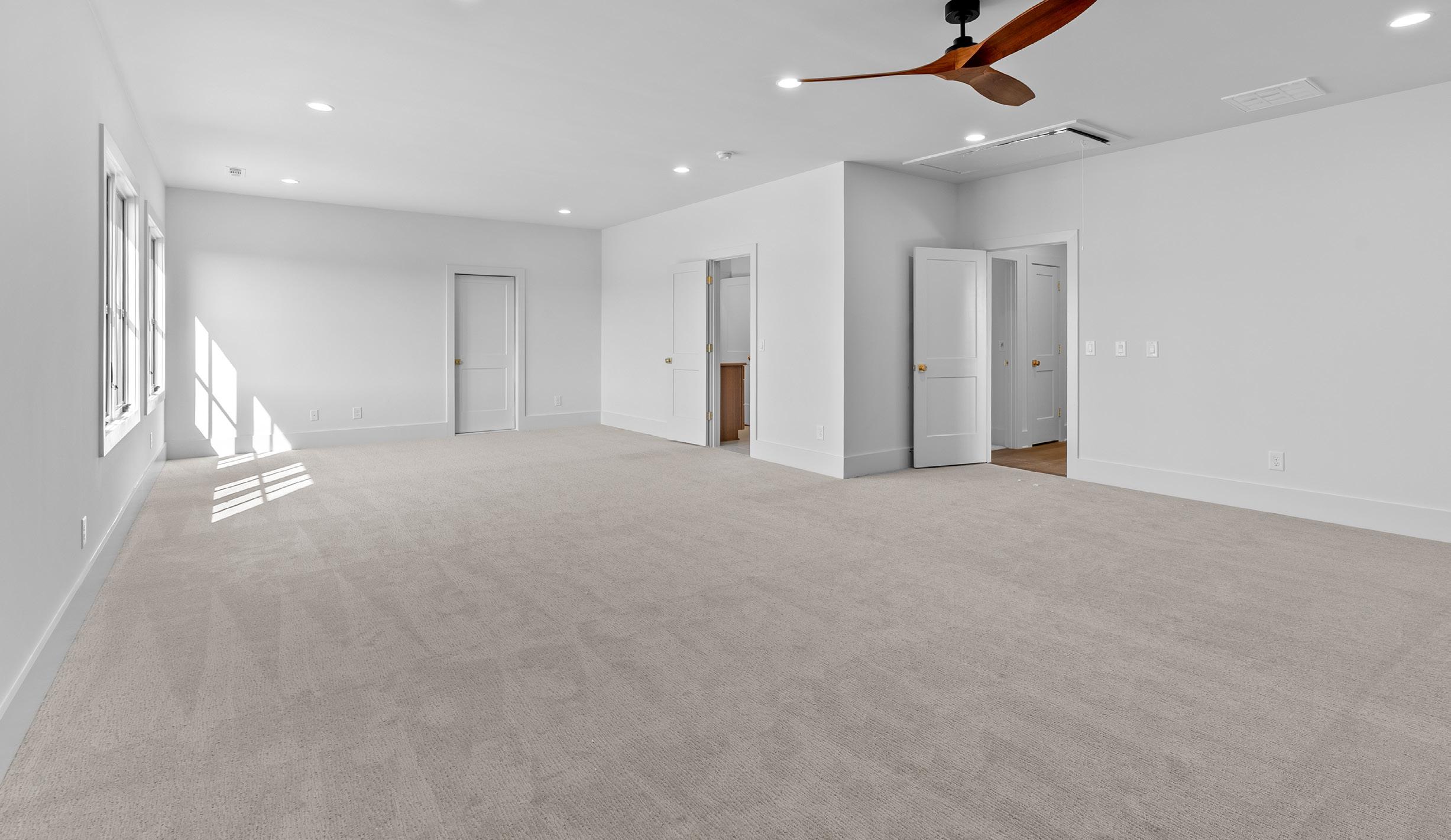 The large bonus room is ideal for a variety of uses, from a playroom to a media space. With plush sculpted carpet, casement windows, can lights, and a ceiling fan, it offers both comfort and versatility. Access to two additional storage areas and pull-down access to the attic ensures ample space for your storage or expansion needs.
