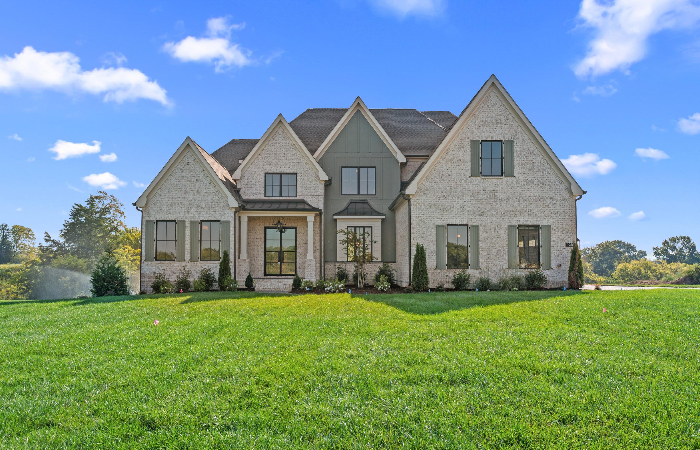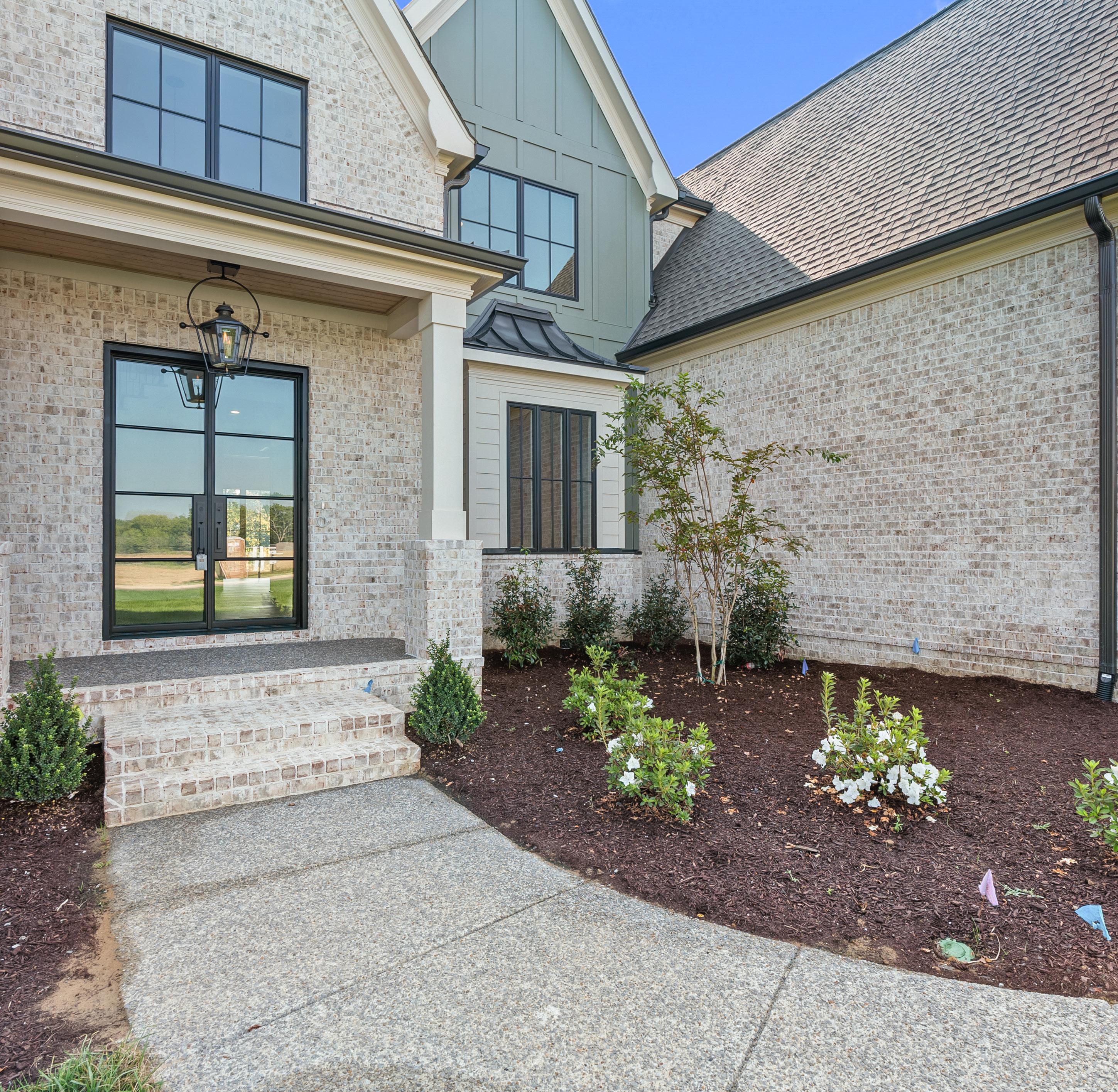 Nestled on a premium corner lot, this expansive front yard boasts lush landscaping that envelops the home in greenery and charm. A grand covered stoop welcomes guests with its gas lantern and stately brick steps. Featuring irrigation and sod throughout the front, side, and most of the rear yard, this homesite offers both beauty and function, creating a serene, environment with space to play fetch with your favorite pet, have a game of football or relax and lounge on a lazy day.