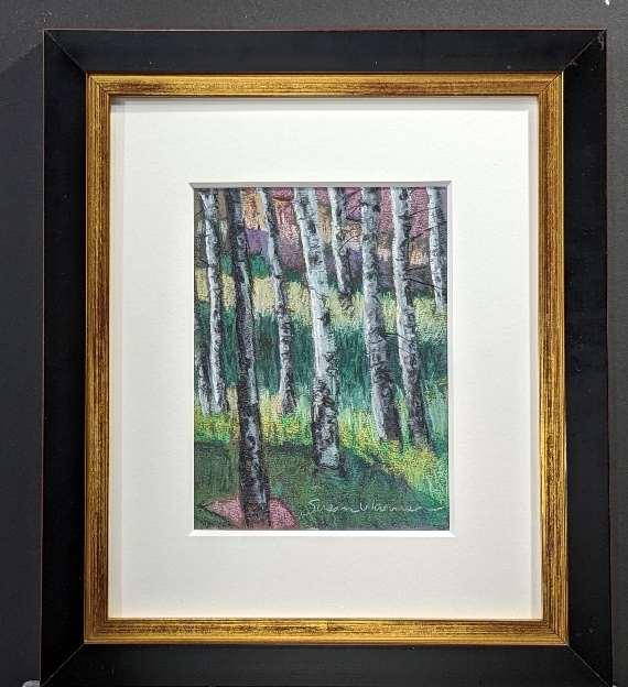 Birchtreesareanotheroneof myfavoritesubjects.The referencephotoforthisonewas takeninColorado,atRocky MountainNationalPark.Ihada nicedayofsketchinginthepark. Image6WX8H,Framed13WX15H
