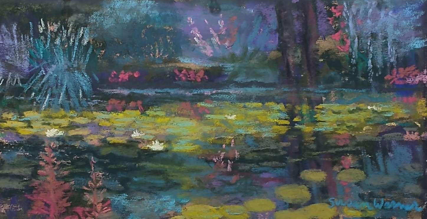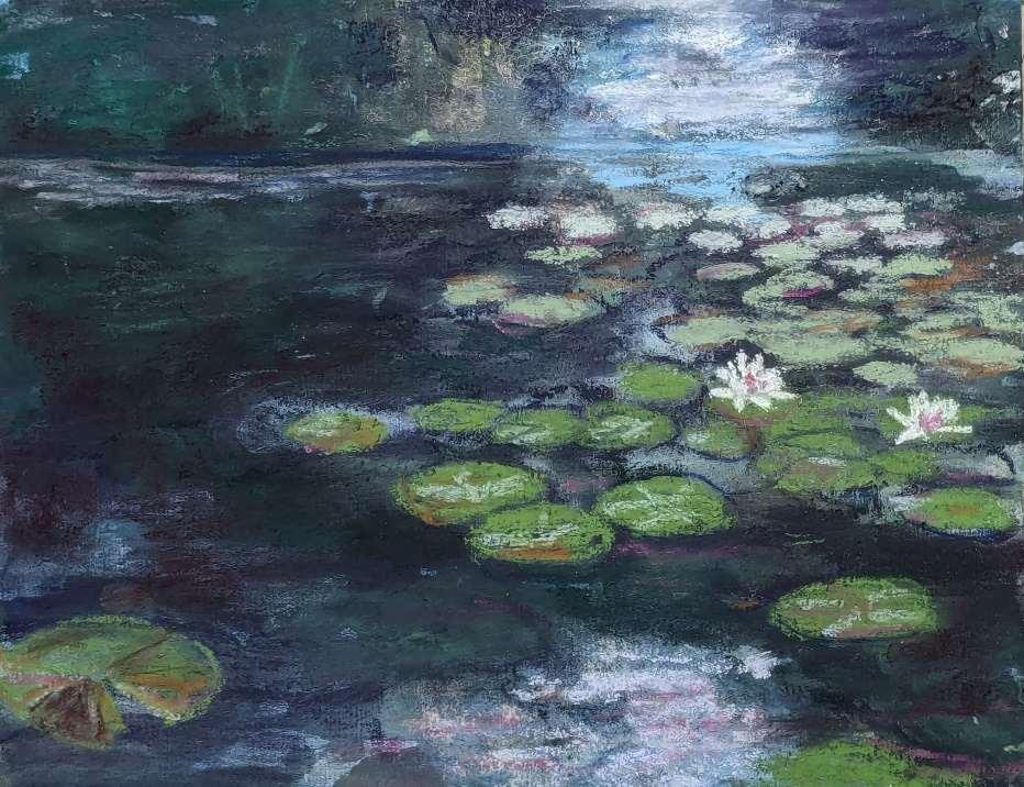 Ialwaysplannedtodosomekindofseries,andthenIboughta samplepackofUartpastelpaper.Therewere7differentgrits andtheywereall11X6.Itriedoutseveraldifferentcolor combinationswiththelilypondscenes.
