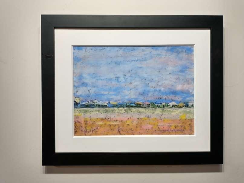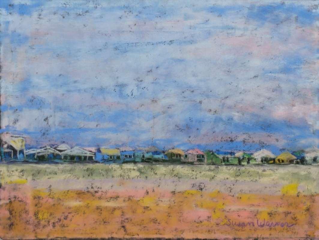 Beachhousesonthehorizon starinthissoftlycolored landscape.Anothersouvenir fromButlerBeach,nearSt. AugustineFlorida.