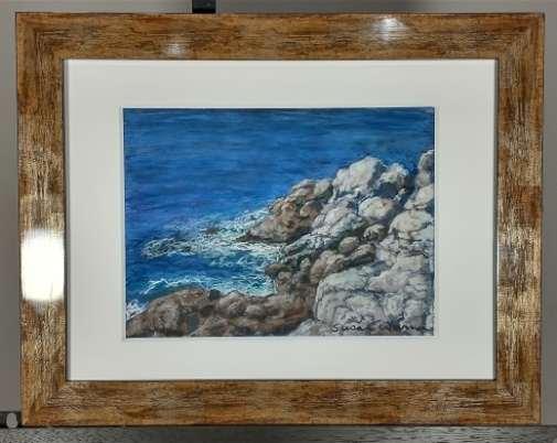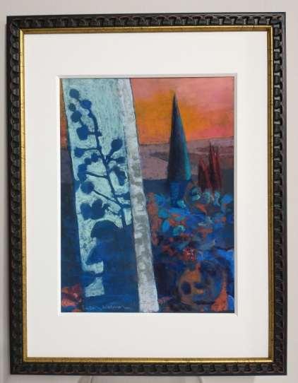 PasteloncoloredPastel paper,mountedinfloat frame.