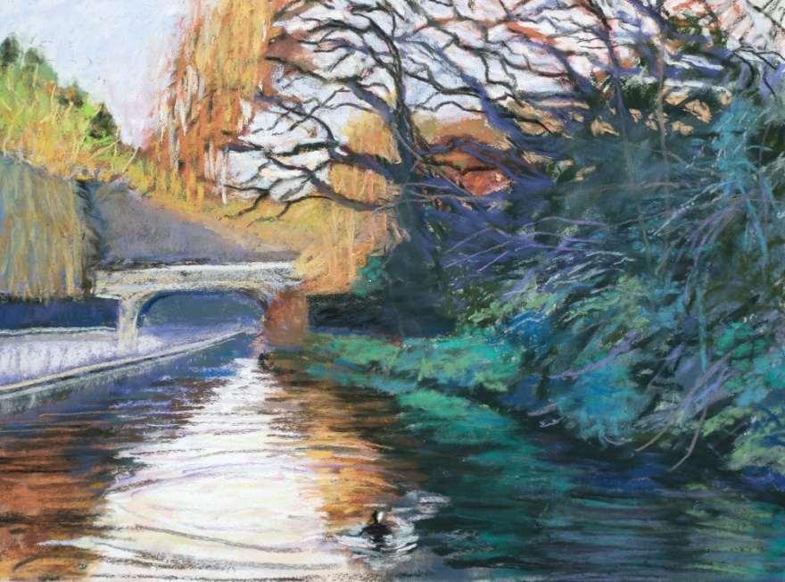 Alateafternoonwalkalong thecanalinLondon,near Regent’sPark.Thiswasa challengetomyselftouse onlythetipsofmypastels. Theeffectisfeatheryand shimmery.