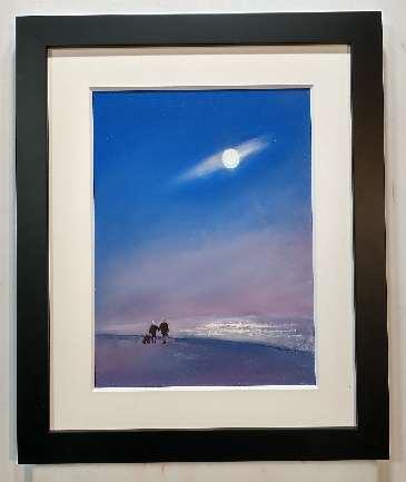 HiltonHeadBeachinthe Fallwasthesceneforthis capturedmoment.The fullmoonwasrising. OzzyOsbourn’ssong lyricsmadeafunnytitle forthispiece,although therewasnotanybarking orhowlinggoingon.