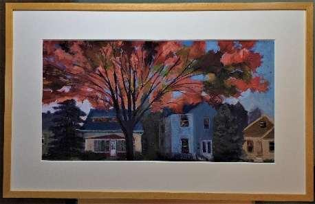 ThisistheviewfrommyfrontwindowinNortheastMinneapolis.Thetrees alongourstreetturnbeautifulshadesofredandorangeintheFall.I employedabitofartisticlicenseandaddedourhouseonthefarright.For thetitle,IwaslookingforsomelyricsaboutFallLeavesandcolors,and then,whilestillinthemidstofthepandemic,IthoughtthatBluewasthe bestwaytodescribethisOctober.