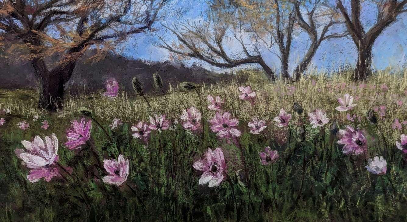 Istartedthisoneduringa workshopwithPastelArtist KarenMargulis.Thetitleis"A PillowofWinds",lyricsfroma PinkFloydsong.Thephoto creditgoestomyfriend KristineLynn.