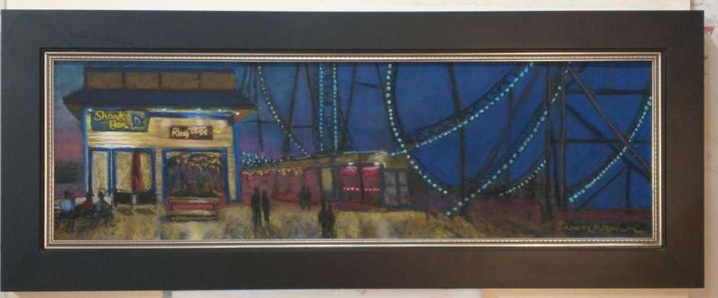 OneMississippi “OneMississippi" pastelonMuseum Board,27x23, customframed. Thisistheviewfrom theUofMwalking bridge,lookingback atdowntown Minneapolisat sunset.Theview haschangedsince thiswaspainted.