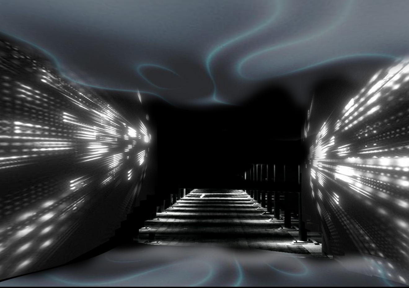 The beginning of the space is partly the stage of the birth of a child, a feeling of exploring the unknown, like groping in the dark. With this light, the projection brings the visitor from outside into the room.