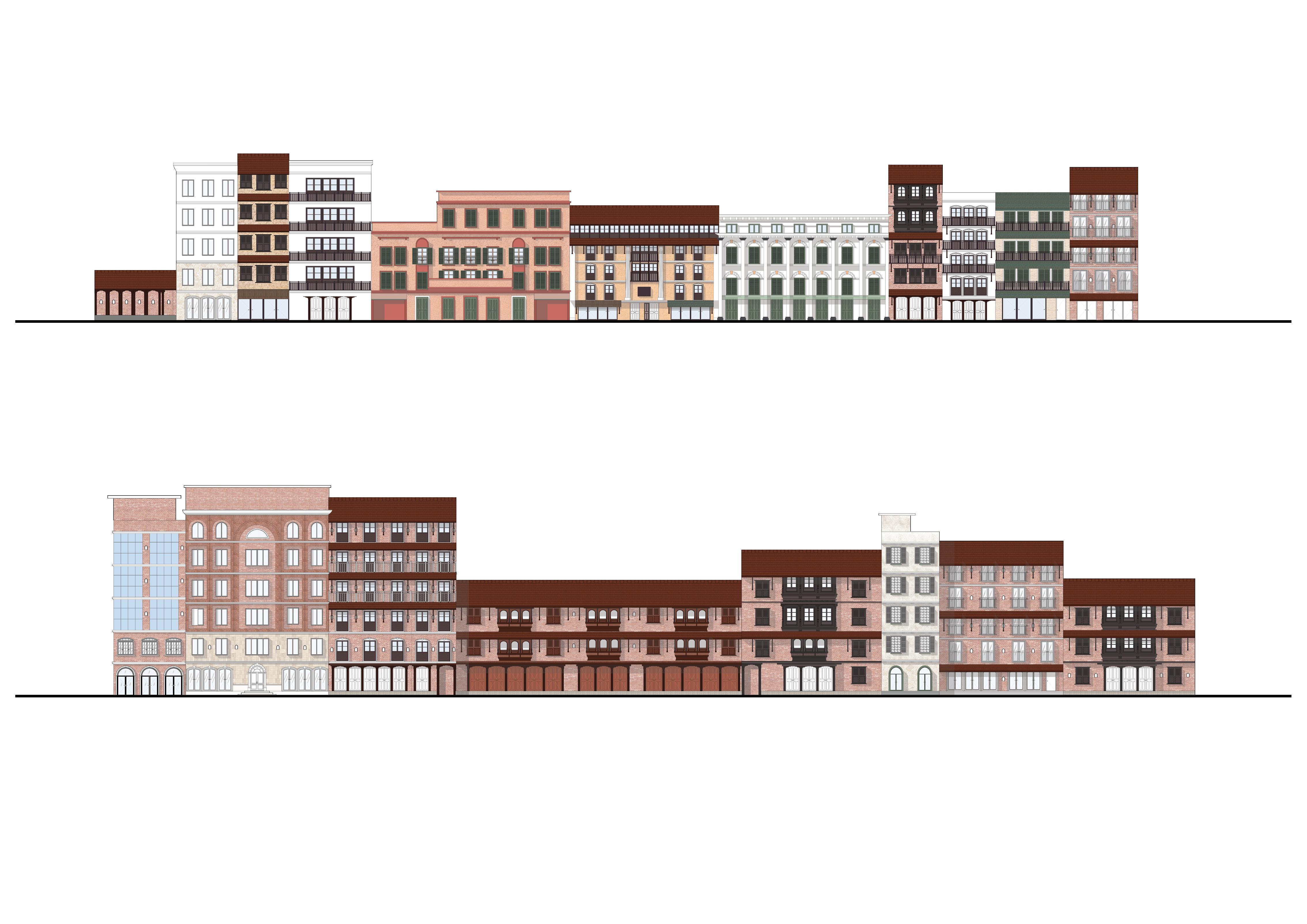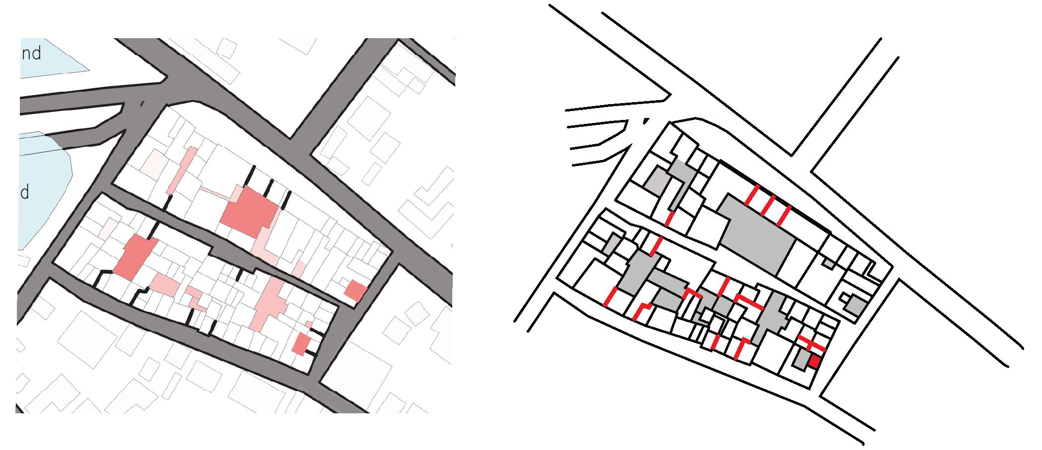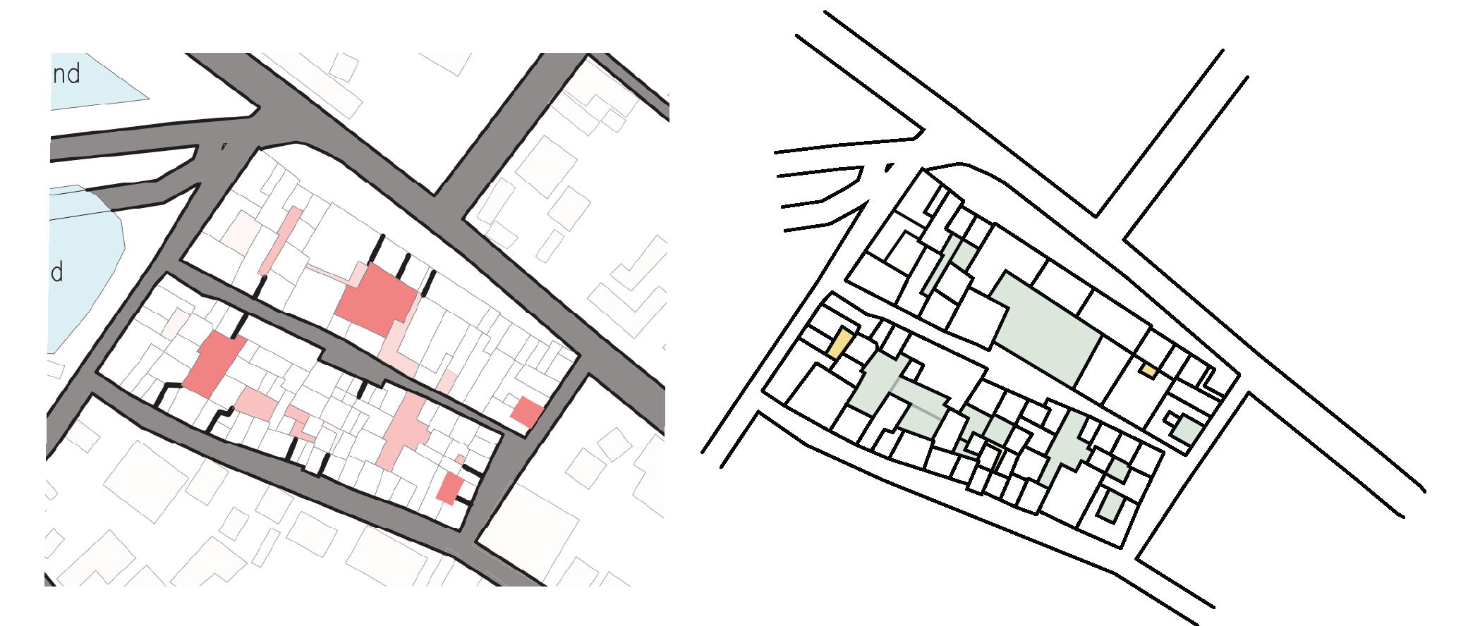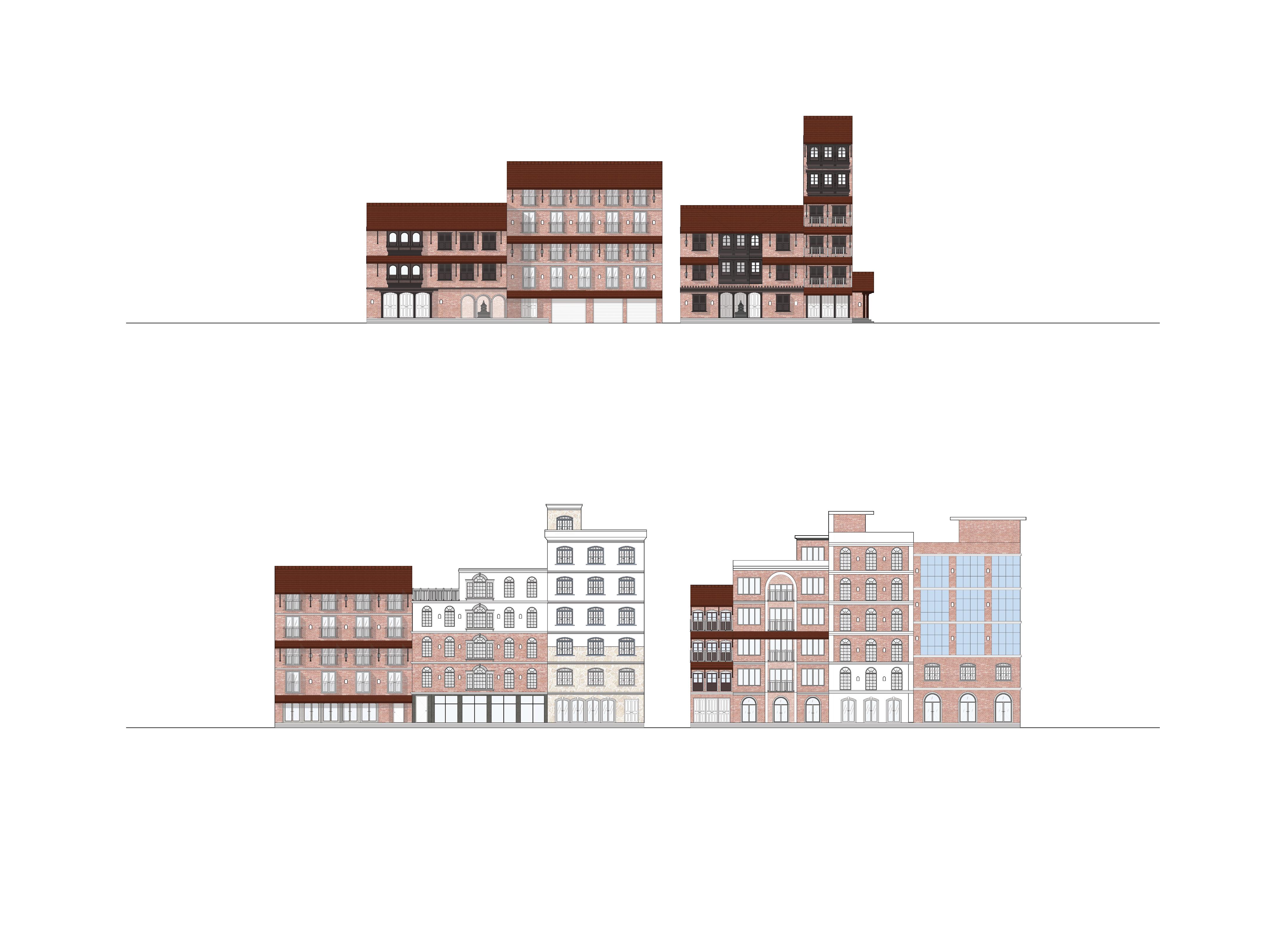 Description : Old houses were demolished due to structural damage, insufficient floor height, or extrem ely narrow widths (2–3m). The plots were merged to create larger footprints for new construction, improving spatial quality while respecting traditional form and scale.