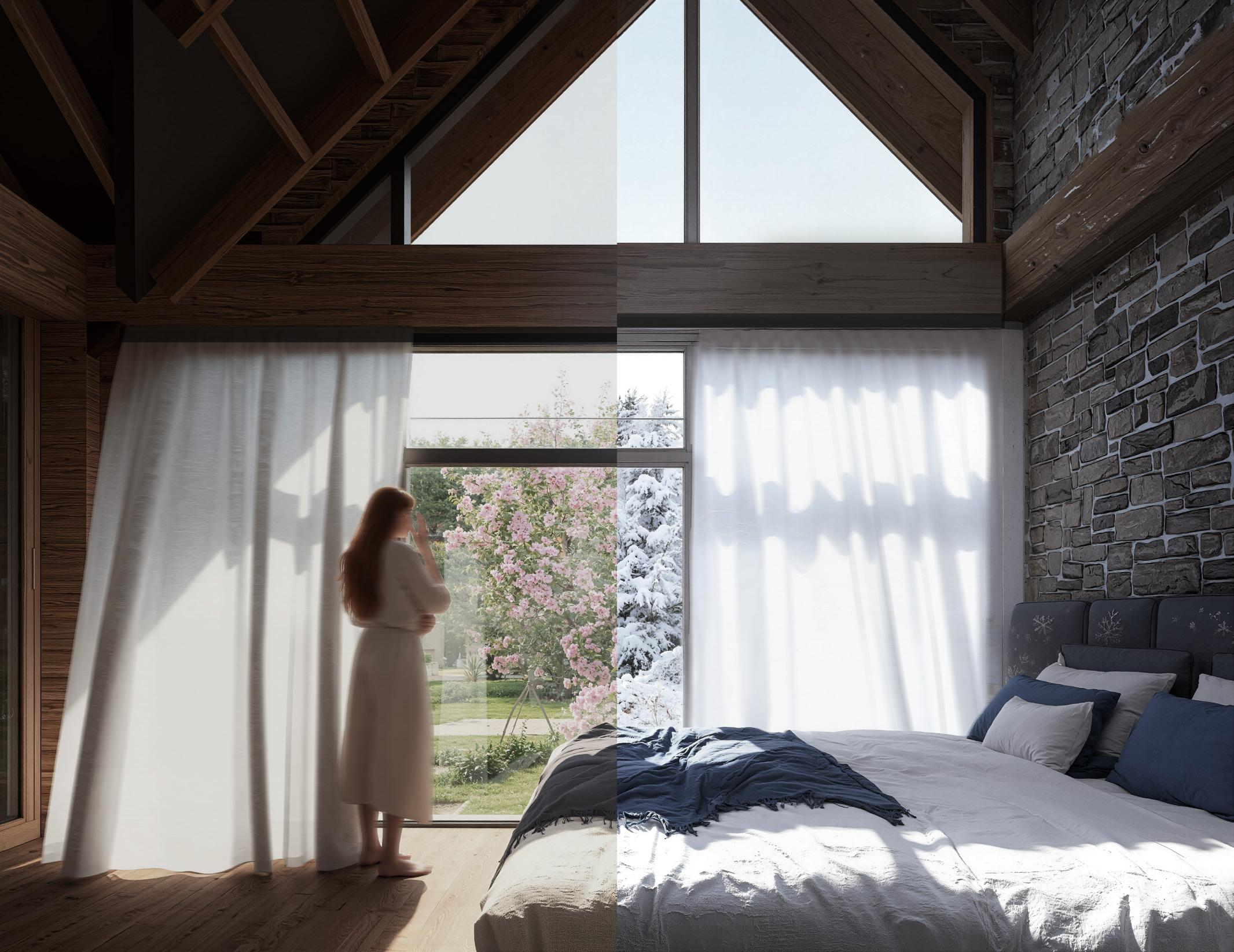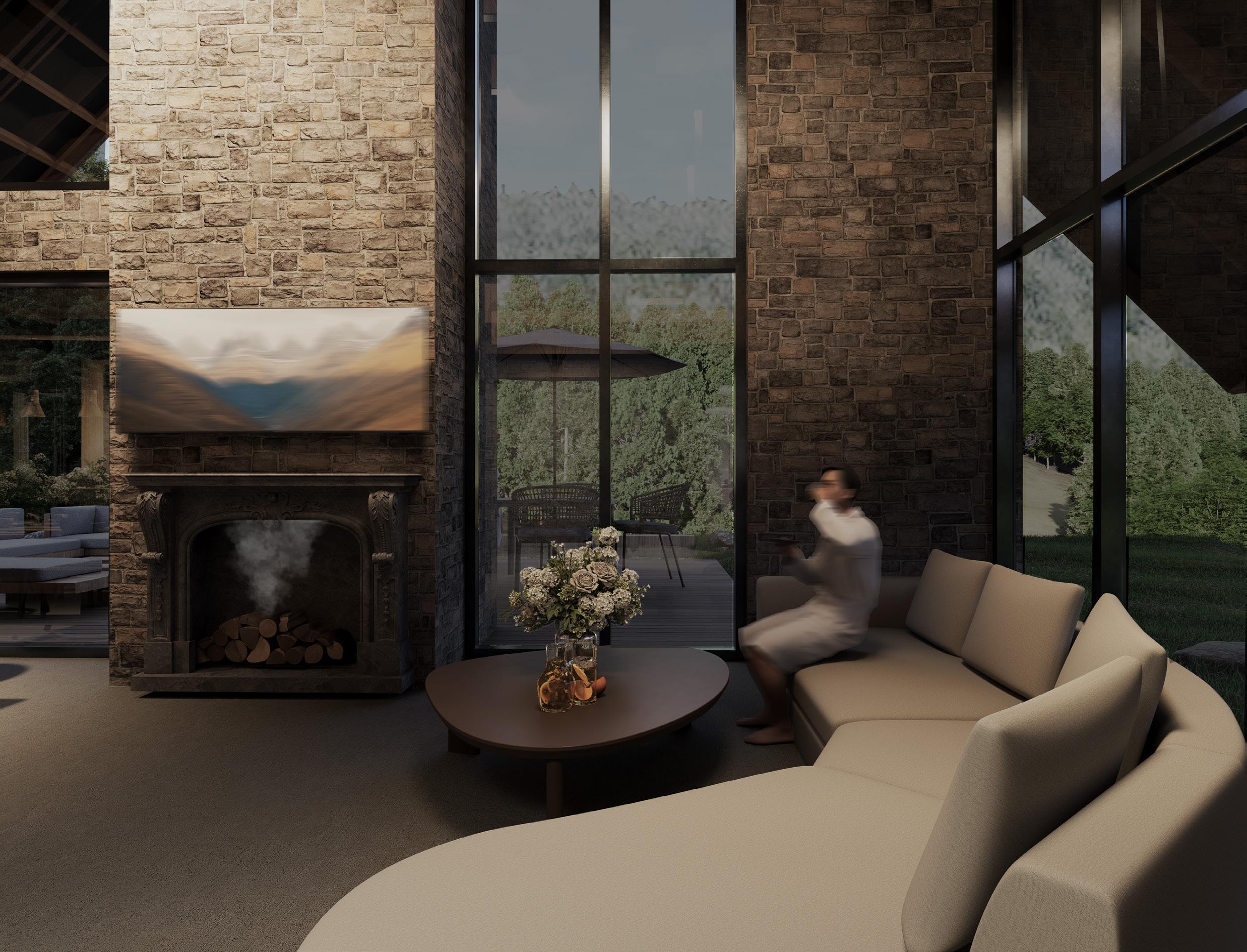 In the long-term vision for the site, the residence is planned to transition into a boutique Airbnb stay, taking advantage of its scenic setting within the orchard. A second, private home for Midul and Deepa is proposed on the upper portion of the site, allowing the existing house to operate fully as a hospitality space while maintaining a coherent architectural language across the property.