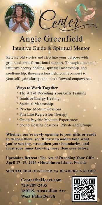 Release old stories and step into your purpose with supportive, transformational sessions. Experience deep healing, selfconnection, empowerment, and clarity through a unique blend of energy healing, mentorship, and mediumship designed to guide your personal growth and elevation. See ad page 9.