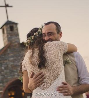 Una de las primeras cosas a resolver como pareja próxima a casarse es el lugar. Y un principio de la sustentabilidad es que todo sea en un mismo lugar, y cercano a donde viven los invitados. Al ser de ciudades dis tintas, nuestros invitados estaban desper digados a lo largo y ancho del país, por lo que podíamos hacerlo todo en un mismo espacio, pero todos los invitados iban a tener que trasladarse. Elegimos un hotel en el interior de Salto porque nos daba el plus de celebrar el casamiento durante todo un fin de semana, rodeados de la naturaleza, aprovechando al máximo el traslado de los invitados y pudiendo cambiar la típica for ma de vivir las bodas: pasar de la vorágine y ritmo desenfrenado de rutinas estanda rizadas, donde apenas cabe el tiempo para respirar, a vivir lo que se conoce como