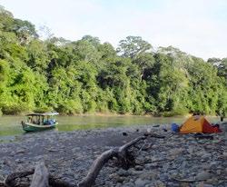 una riquísima biodiversidad. Su flora cuen ta con más de 5000 especies de plantas, y está habitado por 2000 especies de verte brados, siendo el área protegida que cuen ta con mayor diversidad de mamíferos, an fibios, reptiles y peces del mundo. El Río Tuichi, caracterizado por la violencia de sus rápidos, estaba siendo descendido por una expedición internacional de cam peones de kayakismo. Su objetivo era de mostrar la tremenda importancia de mante ner virgen el Parque Nacional, dado que en el estrechamiento conocido como ¨El Bala¨ se planeaba construir una represa. Fui in vitado a ir río arriba en la embarcación del Parque Nacional hasta donde, terminados los rápidos, sería el punto de encuentro para facilitar el regreso de los expedicionarios. Acampamos en la selva de altísimos árboles. Al atardecer, fui gratamente sorprendido