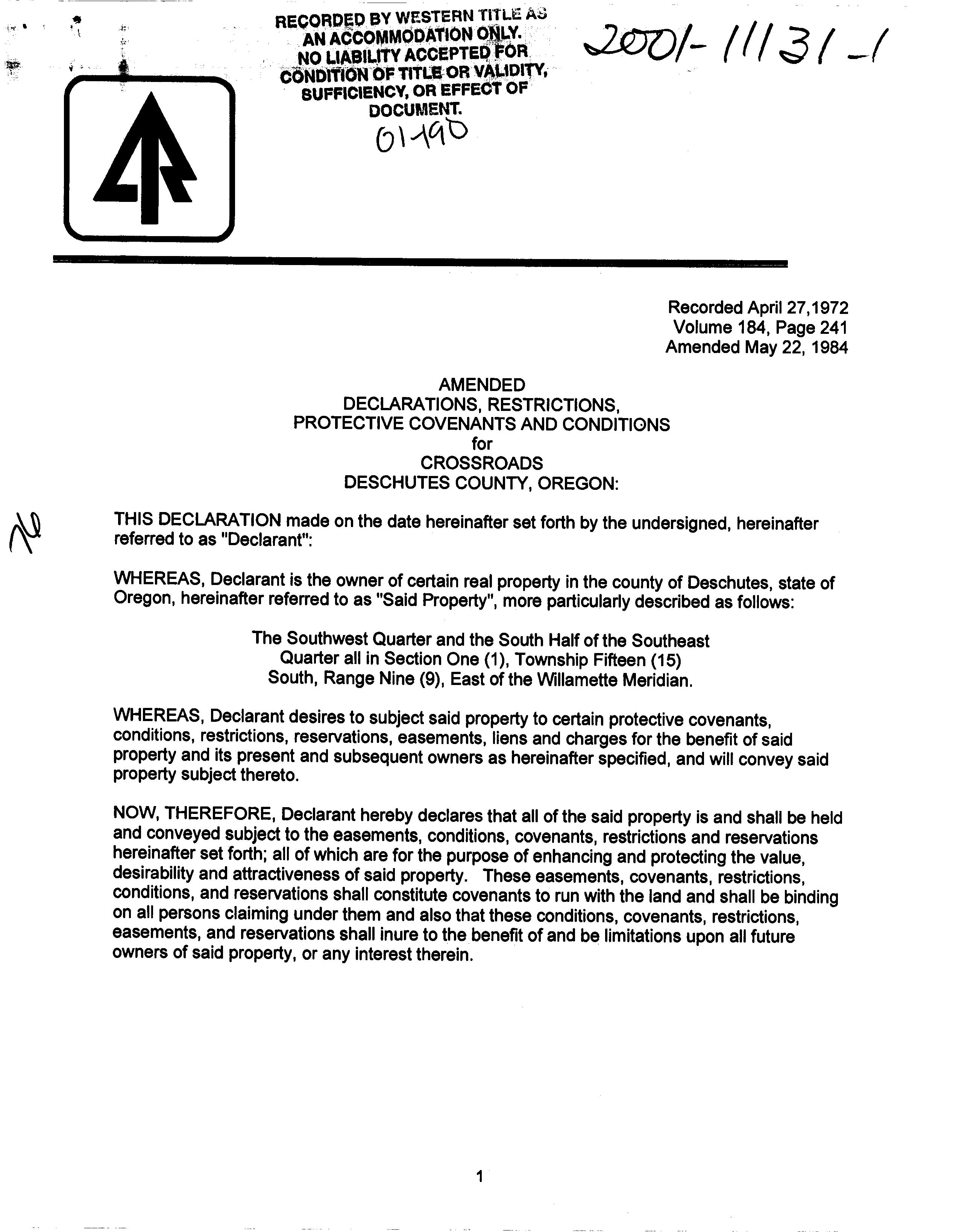 LOCATED AT THE “PROPERTY"